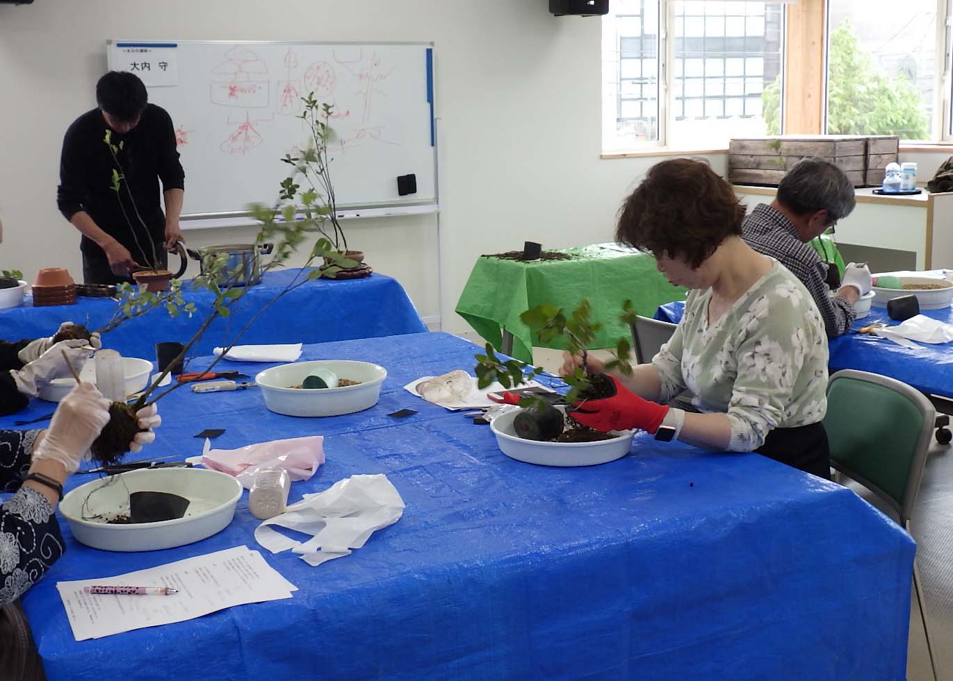 盆栽の初心者向けの講習会です。昨年の講習の雰囲気は下の写真の感じです。