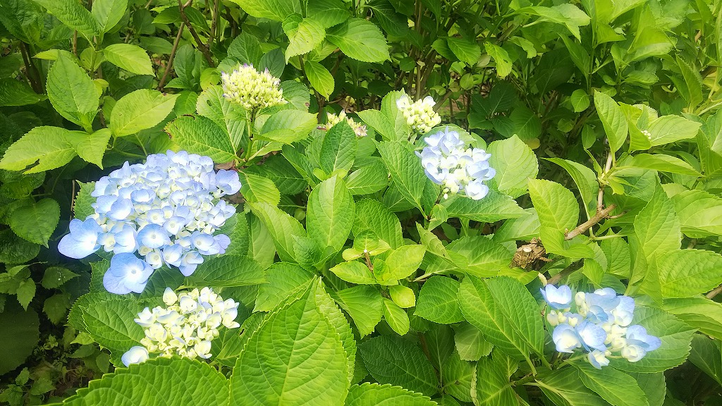 同じ場所ではこのほかにも、いろんな色のアジサイが咲き始めます。