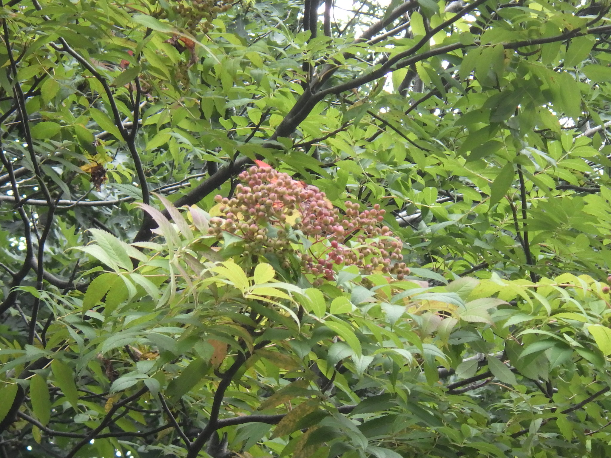 駐車場ではナナカマドやシンジュの木に実がついていて、少しづつ赤くなってきています。