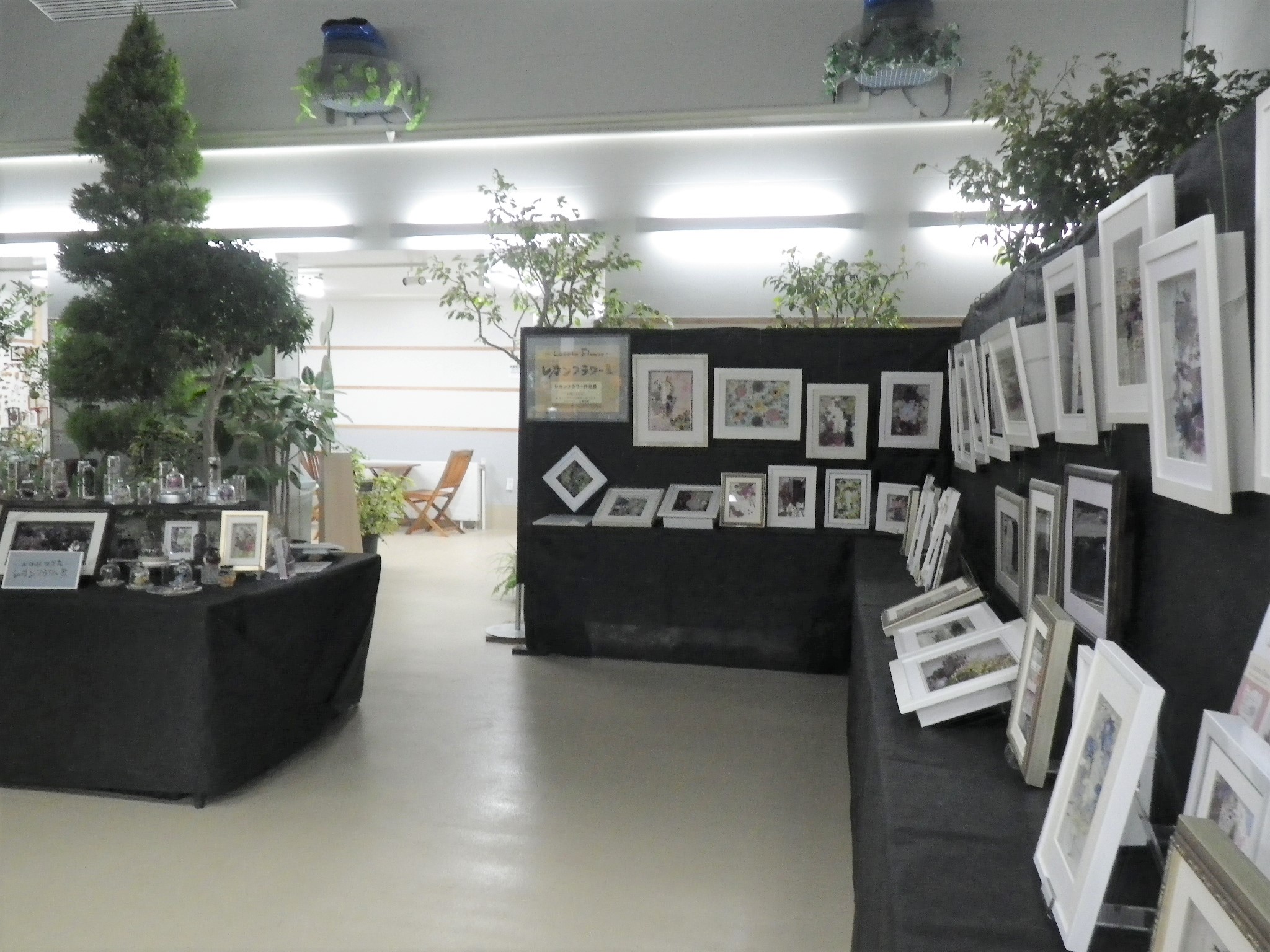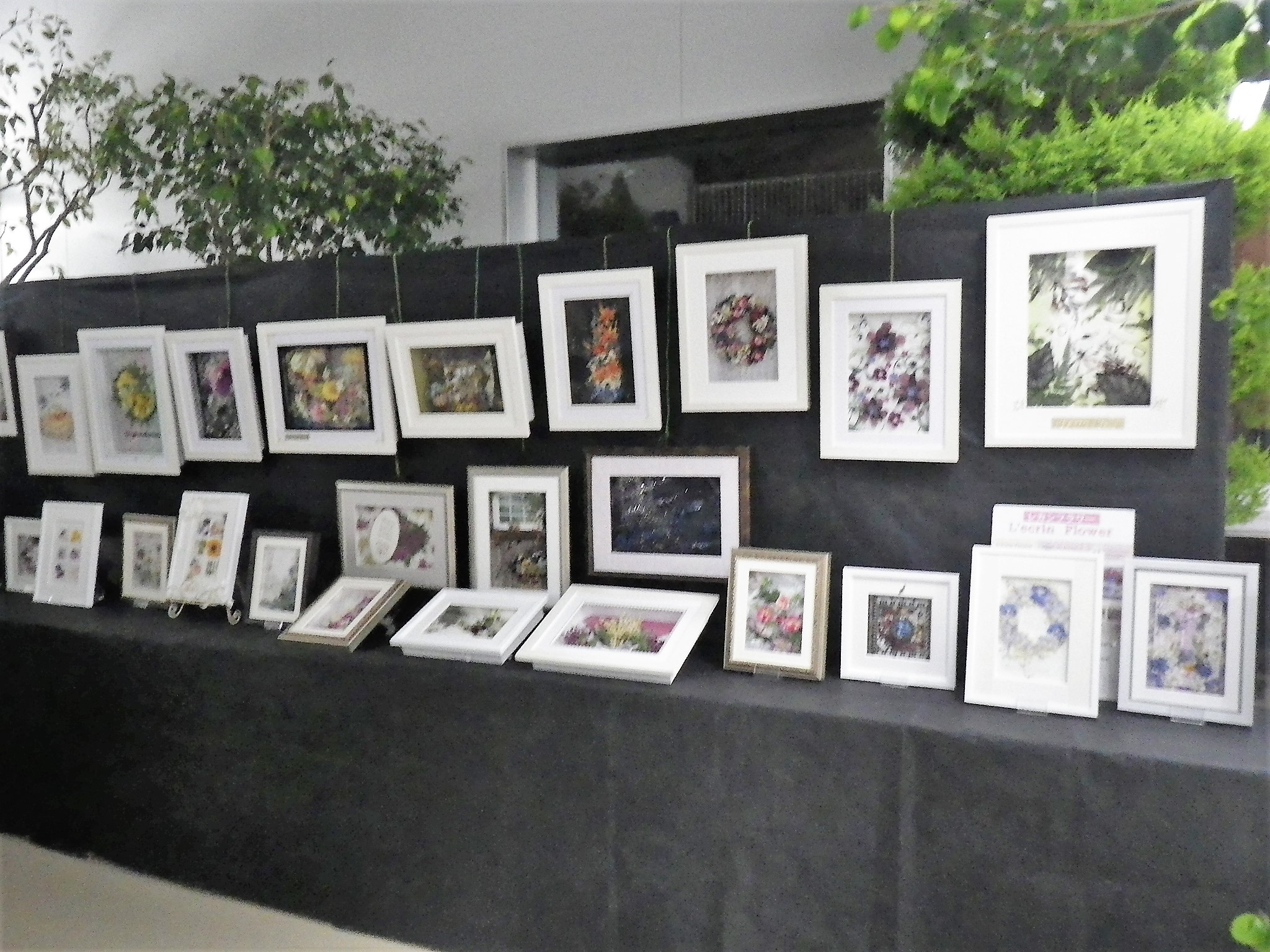 今回展示する作品は、額作品54点、ハーバリウム48点、ドーム、アクセサリー16点、合計118点を展示。