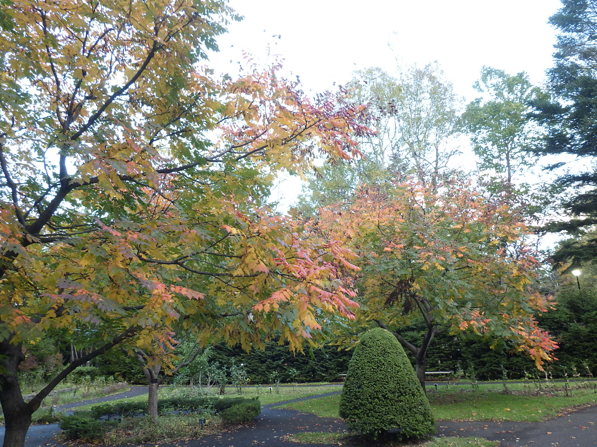 豊平公園の園内も黄葉する樹種から紅葉が始まっています。