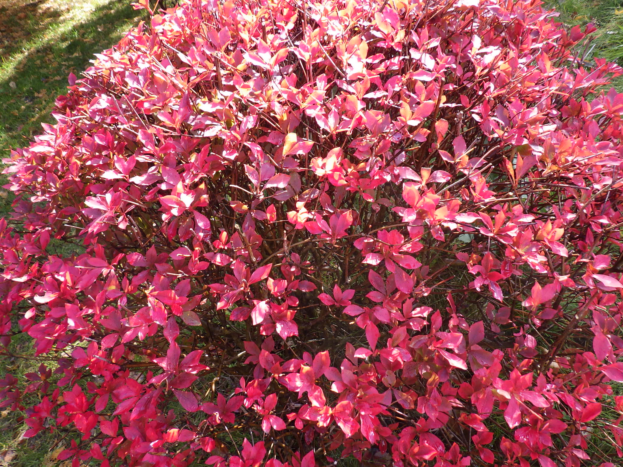 丸く刈り込んだ表面に残る葉が真っ赤。ドウダンツツジやサラサドウダンツツジなど意外に紅葉綺麗なのですよ。今年は特に綺麗な気がします。背の低い花木で花も楽しめて、秋の紅葉を楽しめる木は2度おいしいのが魅力です。ツツジ類は落葉してから冬囲いします。