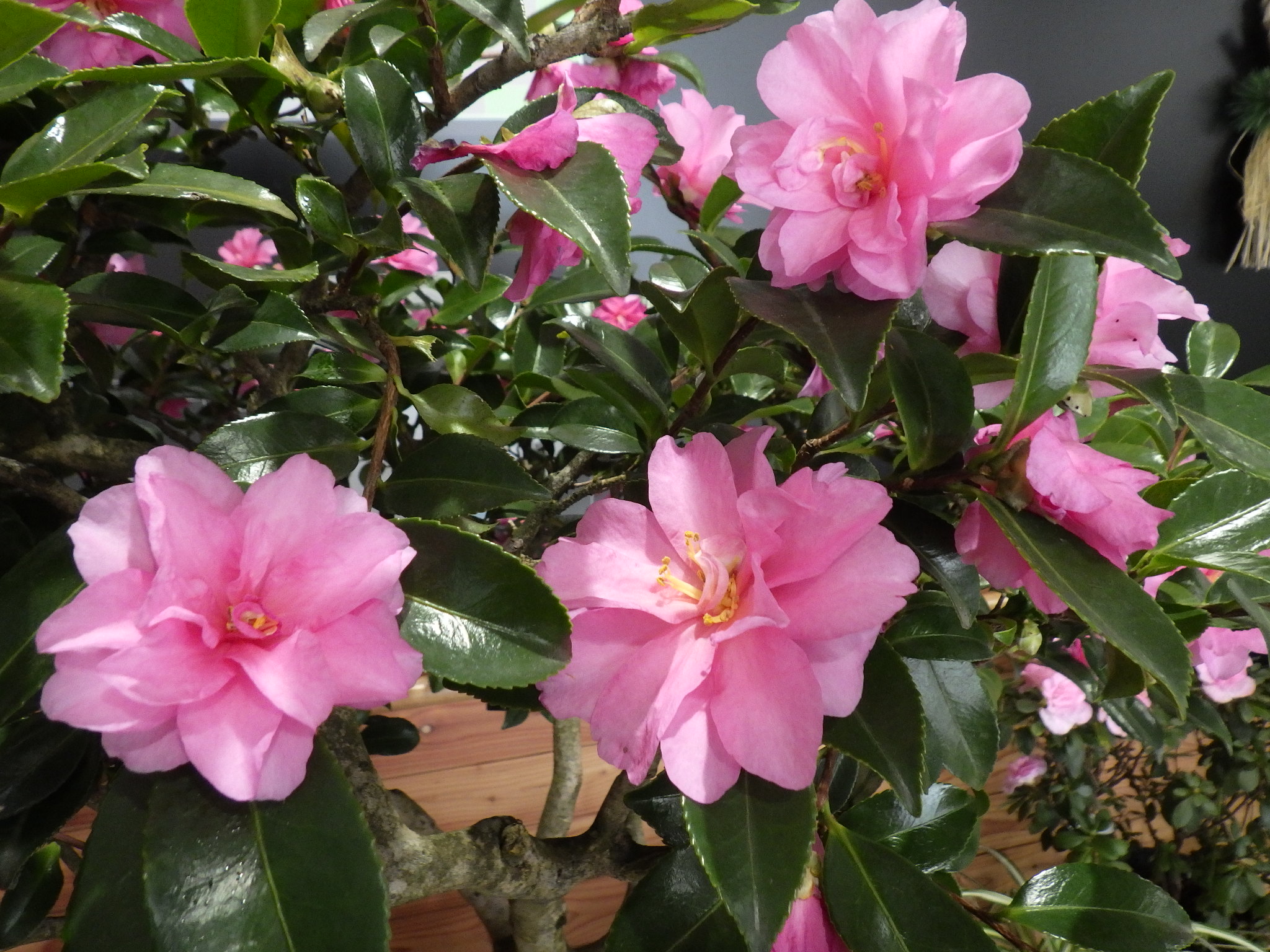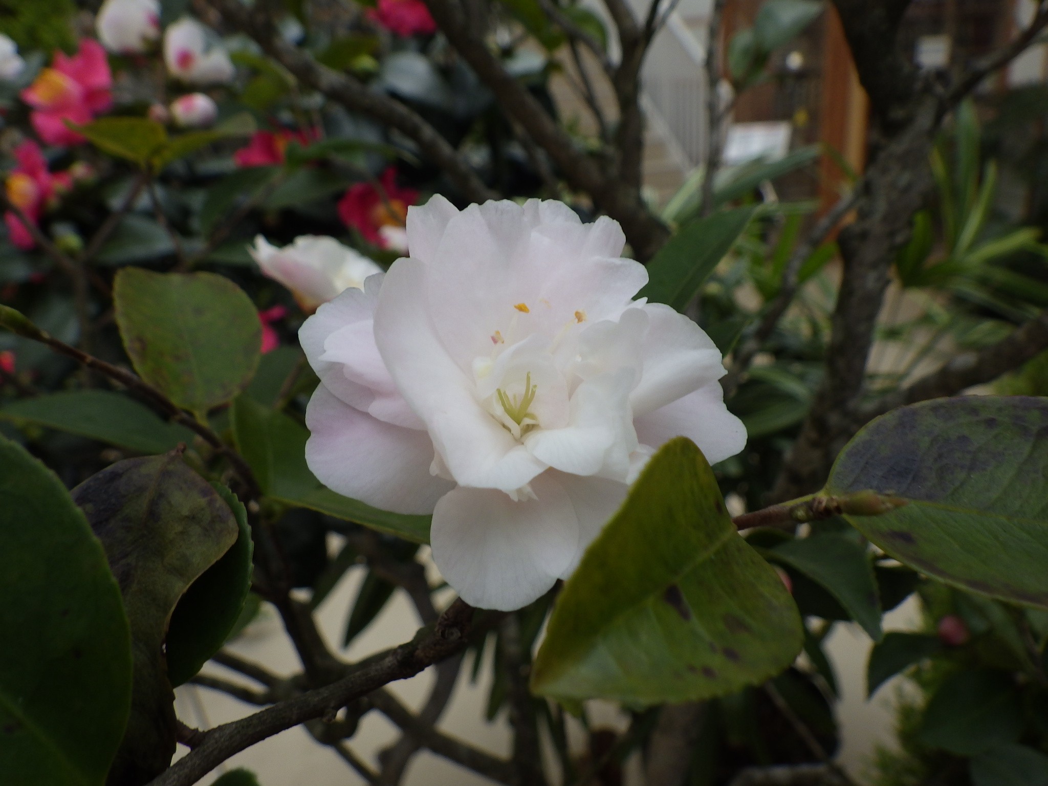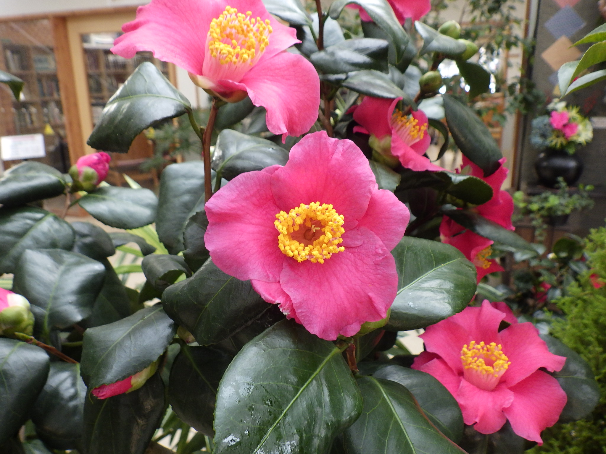 正面玄関ではサザンカ↓が満開でお出迎え。