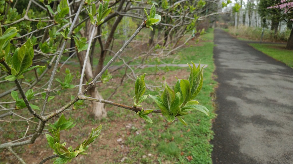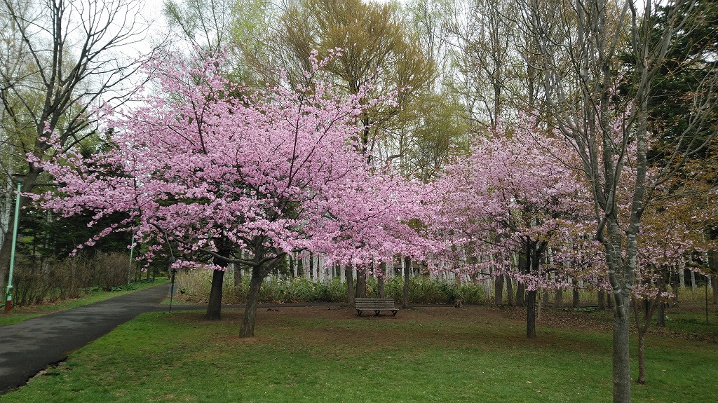 写真はセンター裏の広場にある、サトザクラとエゾヤマザクラです。