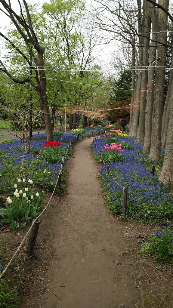 豊平公園は街中にあって、交通機関も便利。そんな都会な公園内でも春の花が次々と咲いてきていて、お散歩にはちょうどいいですよ。