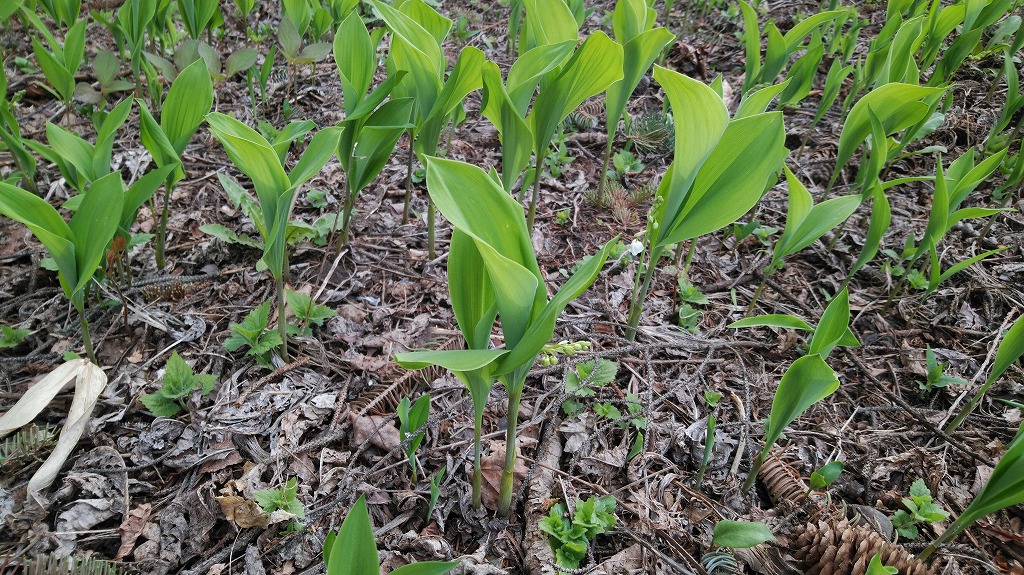 ドイツスズラン 蕾が上がり、1輪咲いているのを見つけました。