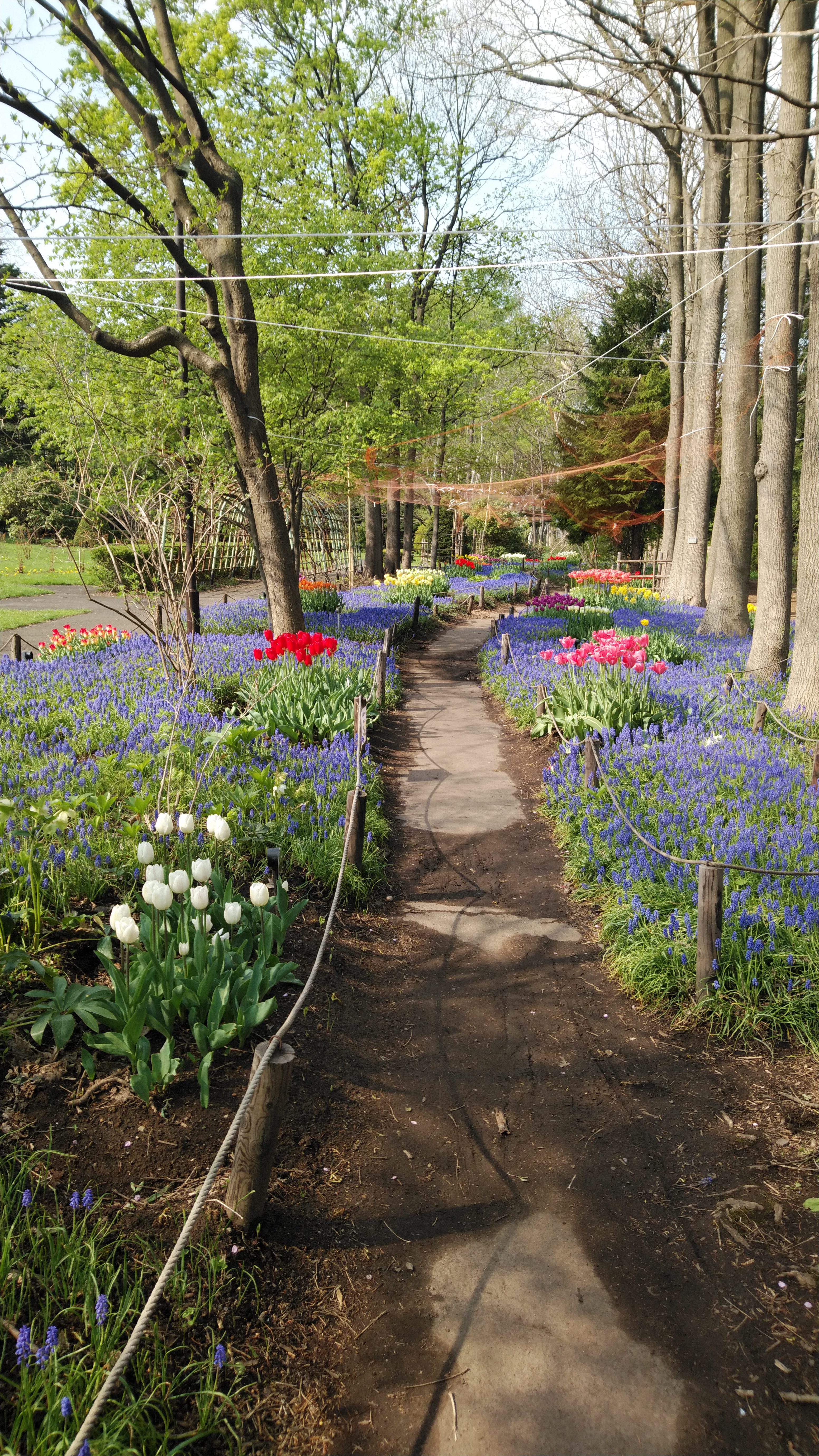 ムスカリの小径ではチューリップがかなり咲きそろい、非常に美しい風景になっています。