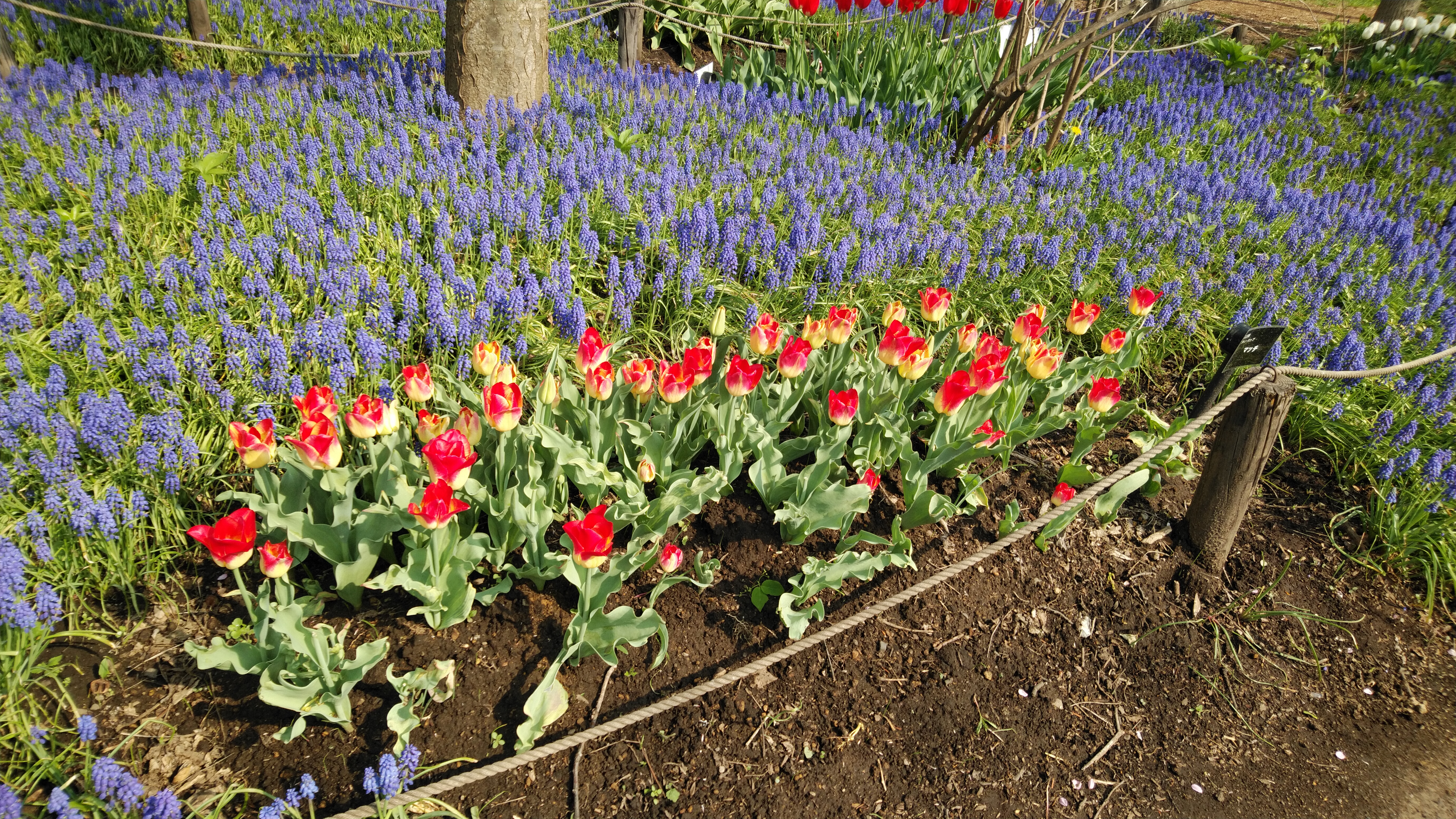 昨年の秋にボランティアさんに手伝ってもらって半分ほどの面積のムスカリを植直したせいか、今年は花数が少ないのですが、大きくて見応えがあります。