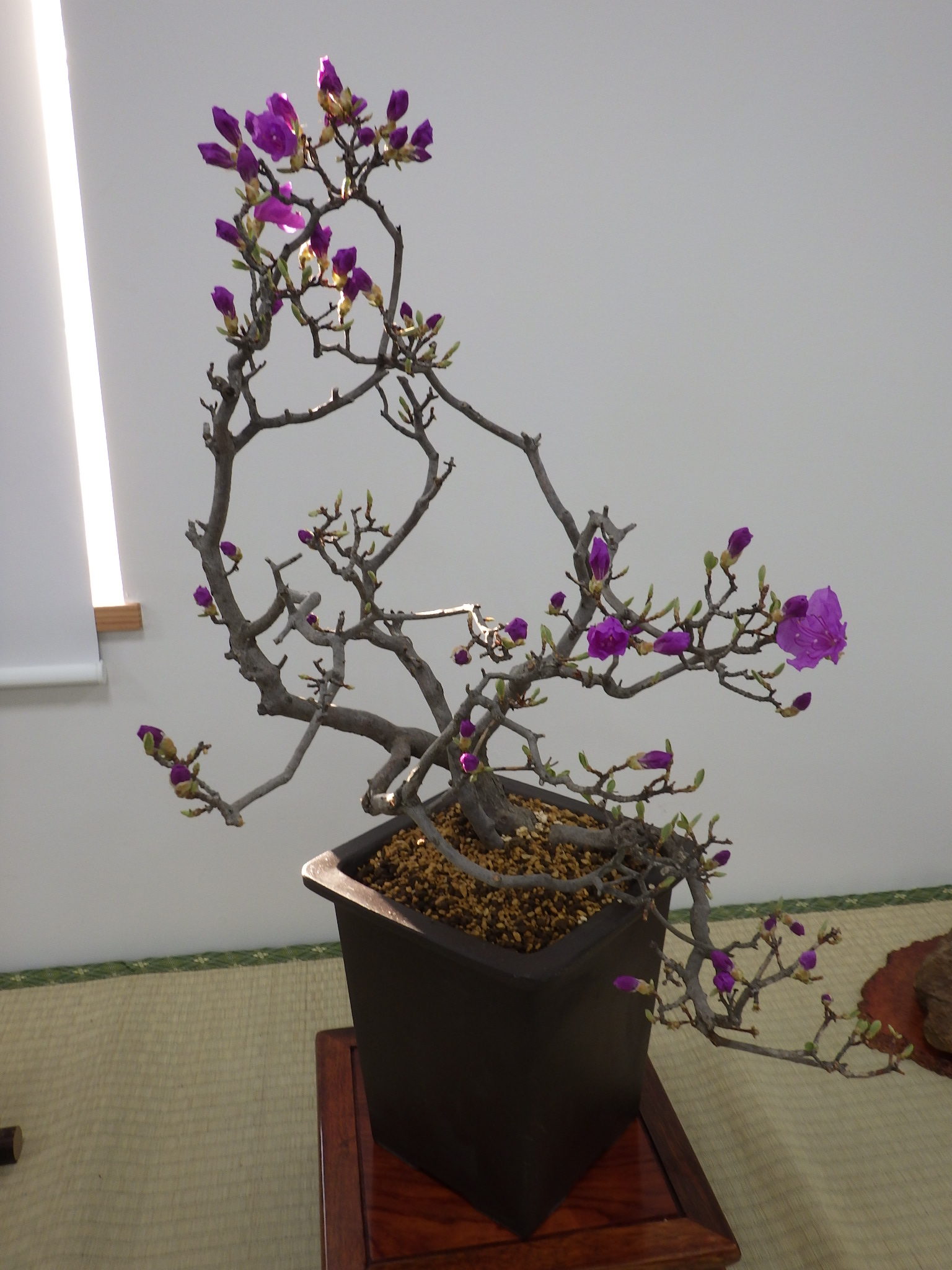 上の写真ではタンナゲンカイツツジの一枝が下の方へ下がるようにし立てたモノのようです。