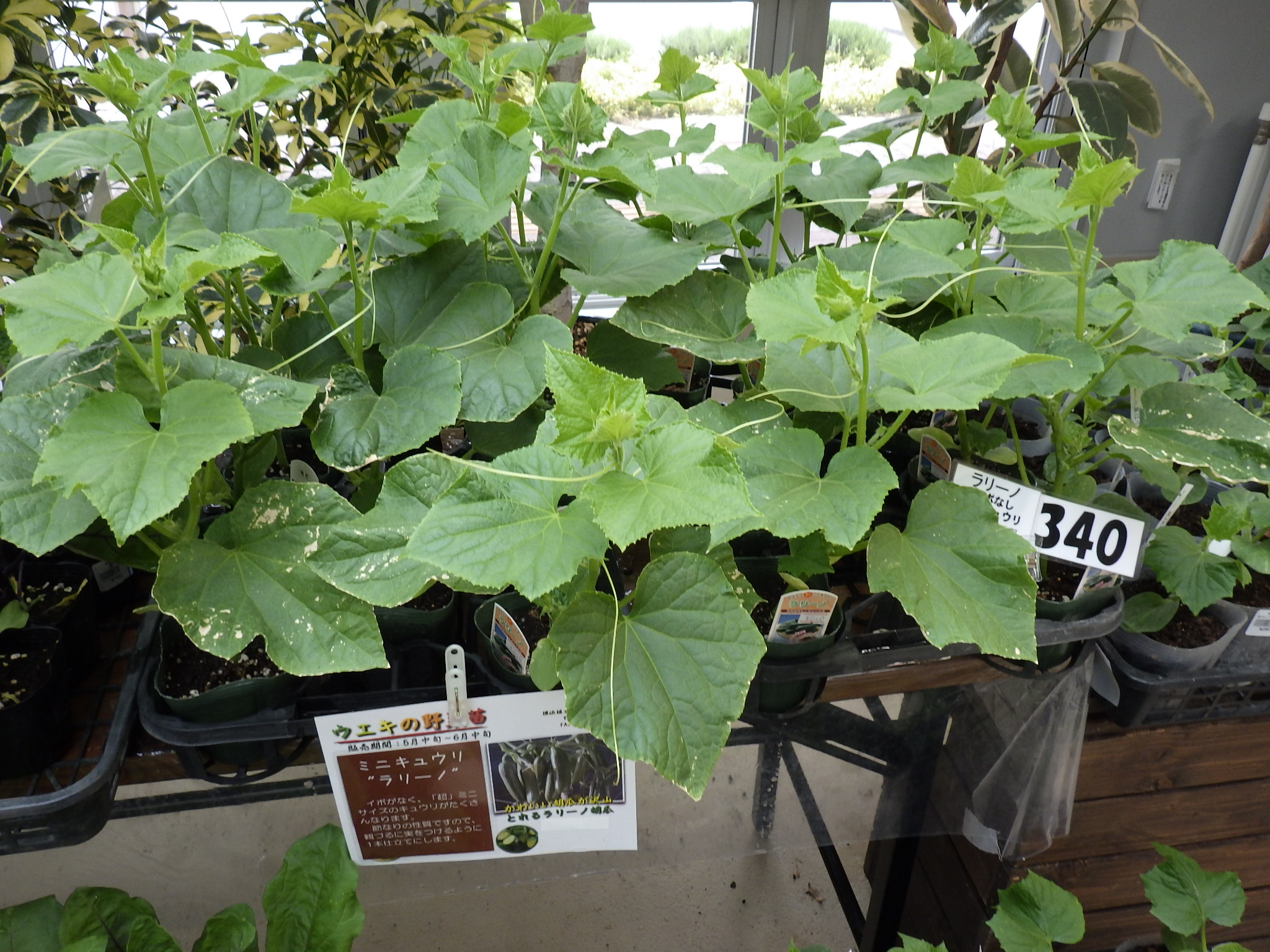 このあと、ゴーヤやキュウリの「夏すずみ」の苗も入荷予定です。