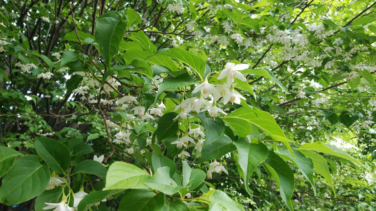 ヤマボウシの横ではエゴノキがちょうど見頃でした。