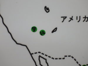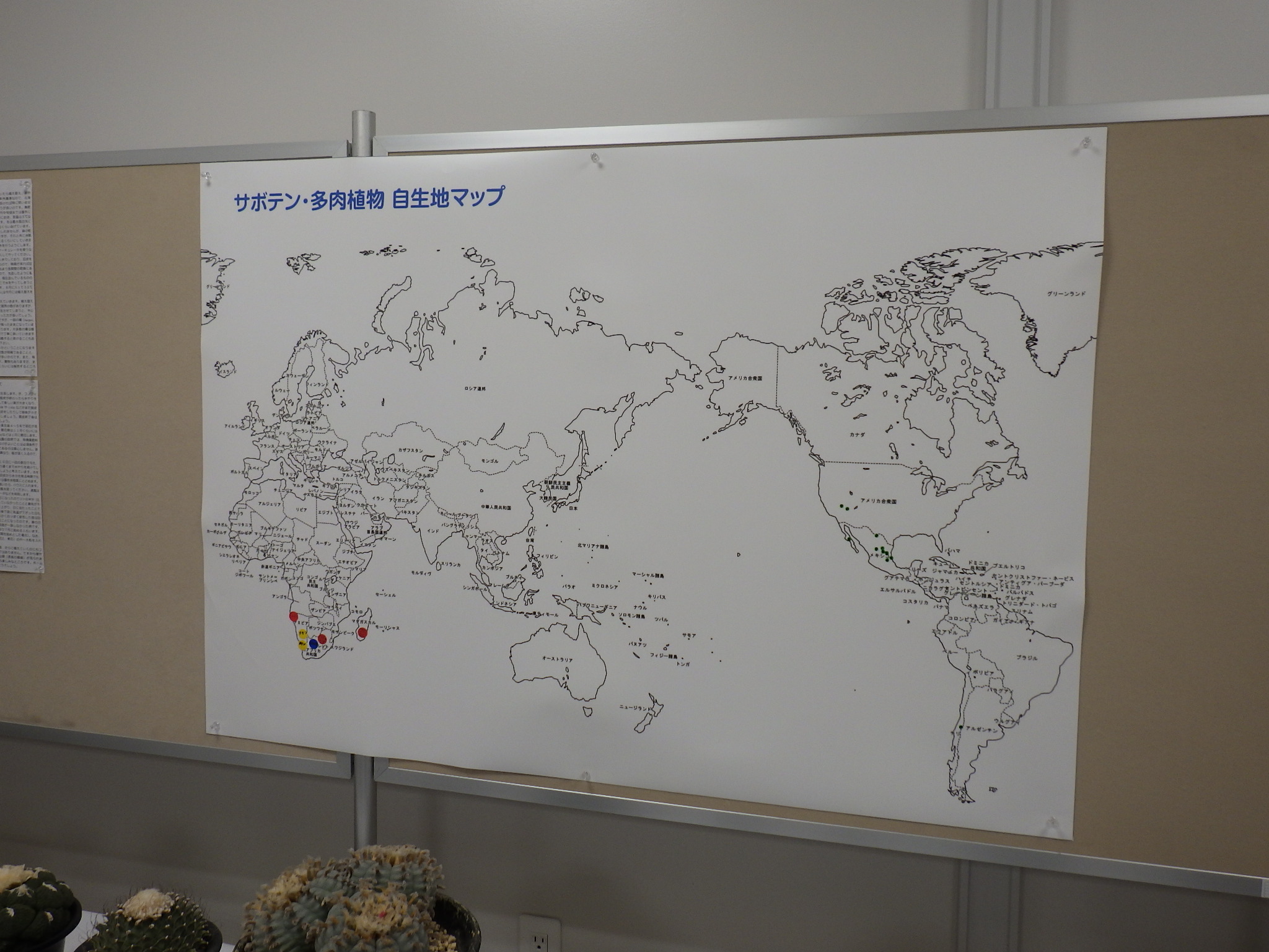 シールの中には番号がついているものがあり、この番号は地図の前に展示されている多肉植物やサボテンの自生地なのです。