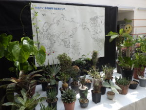 トゲの大きなサボテンも目立ちますが、今回は多肉植物などの原産地のマップや、実生から育てているサボテンのそれぞれのステージを展示するなどちょっと説明するような展示が多くなっています。