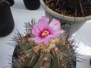 サボテンの花は意外につやつやした花弁なので可愛らしい色味のモノでも豪華に見えますね。