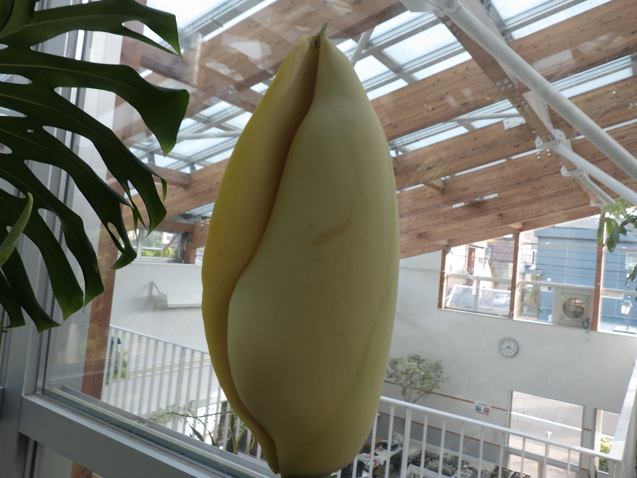 2階の常設展示室内でモンステラの花が咲きそうです!
