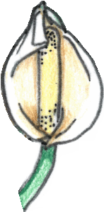 イラストの上が花、下が花後に肉棒花序が実になった状態です。