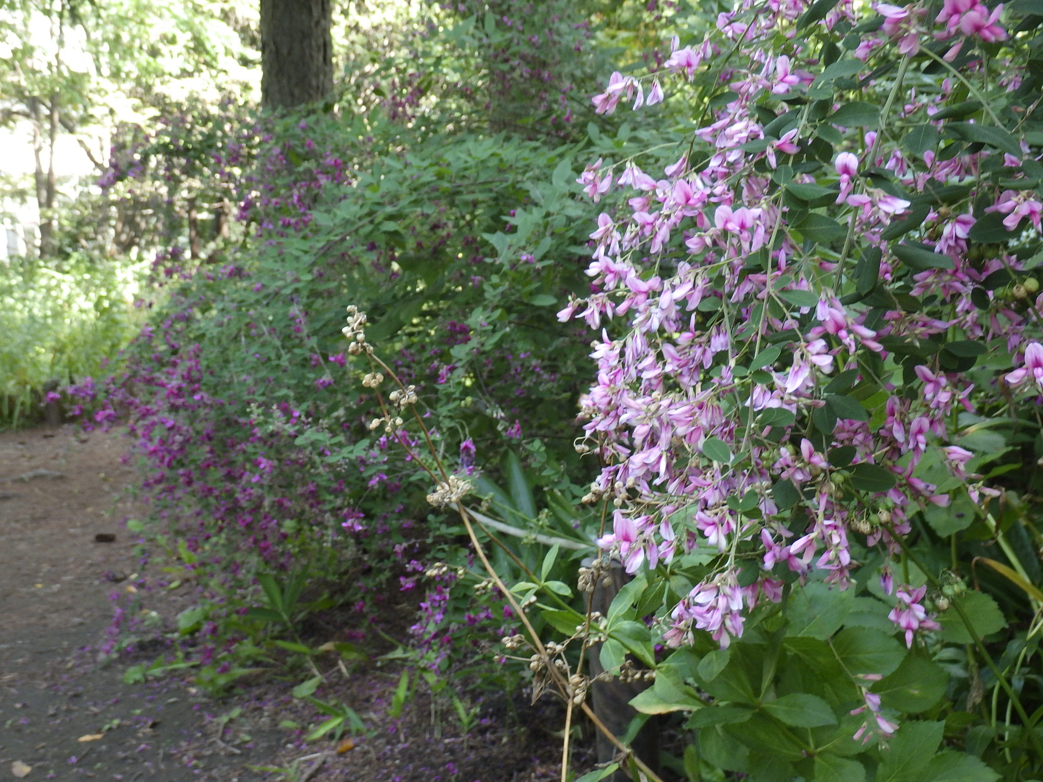 ミヤギノハギのブロックを1周すると3色ともきれいに咲いています。