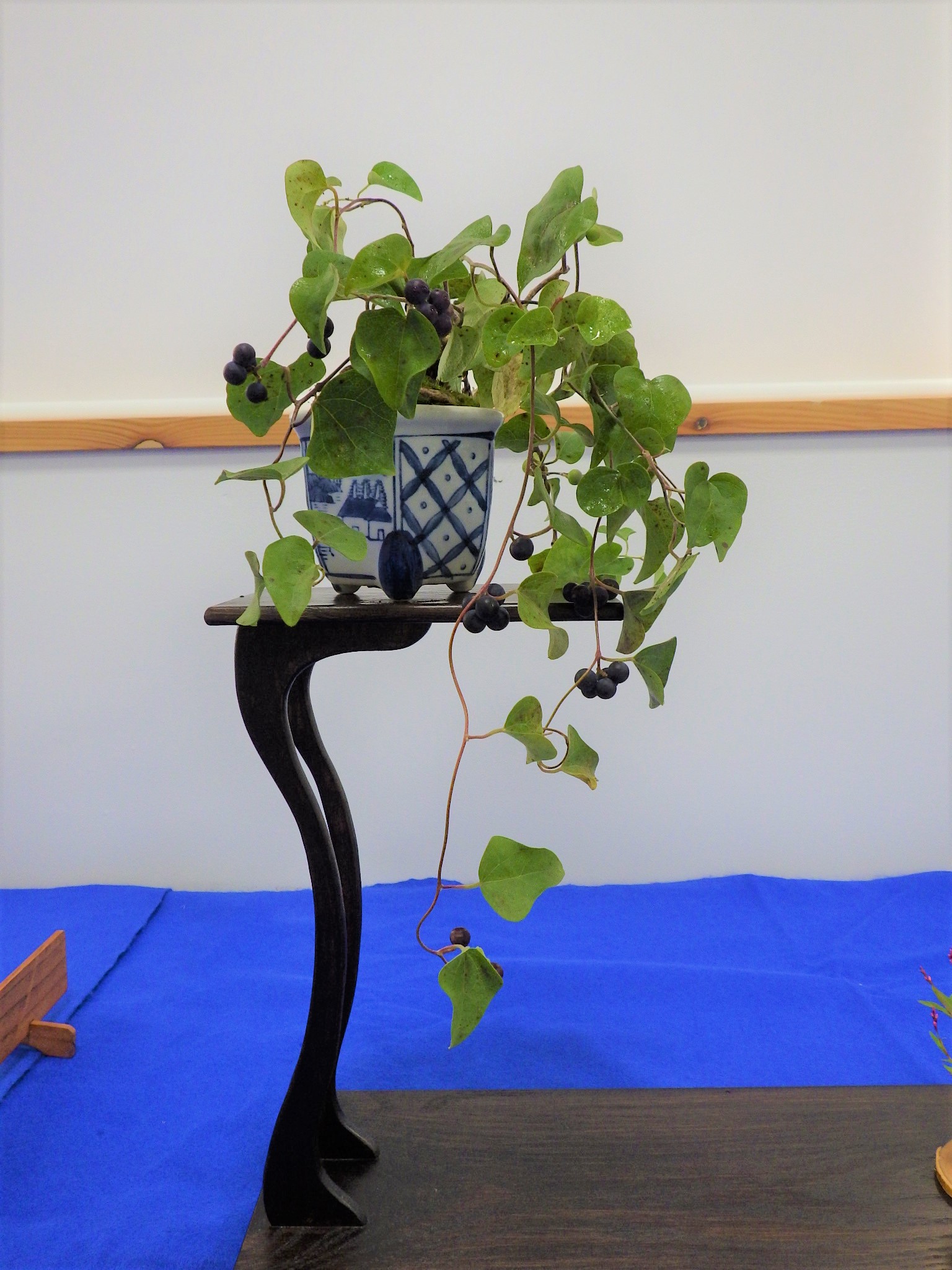 万葉集では黒葛の名で登場しており、古くから親しまれている植物です。ブドウの実のような青黒く丸い実がなっています。