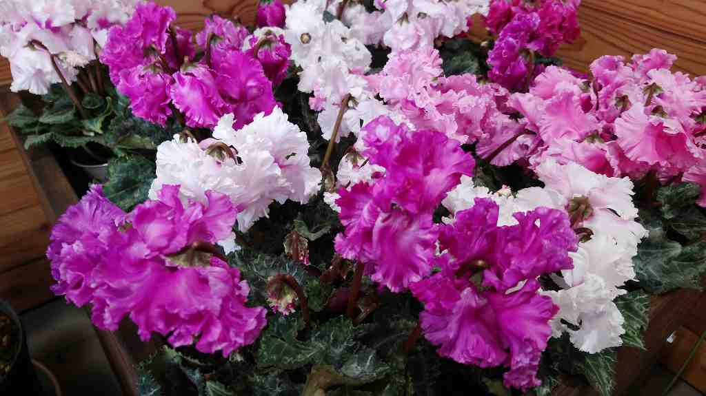 その横には鮮やかなミニシクラメンが咲きます。