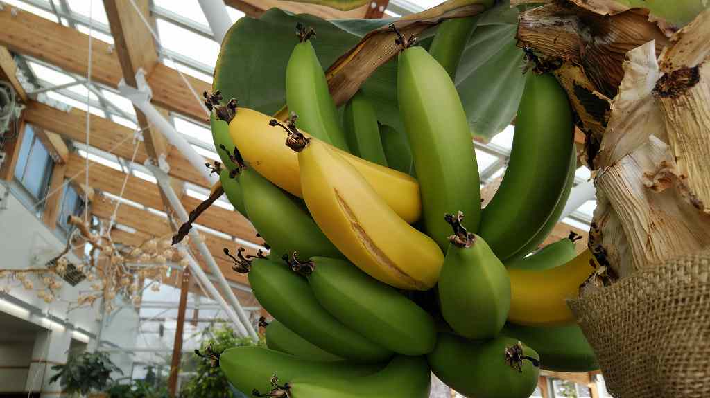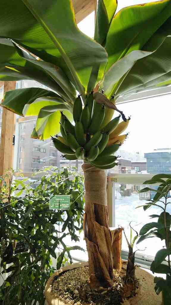 カラーリーフ展の奥にはバナナが実っています。