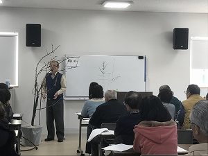 ウメやリンゴの枝を持って来て、実際にどう切るのか実演もいたします。