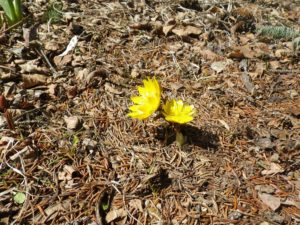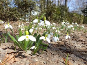 現在、豊平公園の園内ではフクジュソウやスノードロップが咲いています。