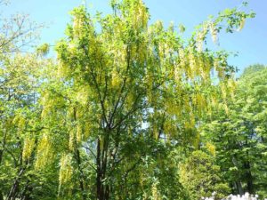 また、正門から入って芝生広場や築山の近くにはキングサリが咲き始めています。