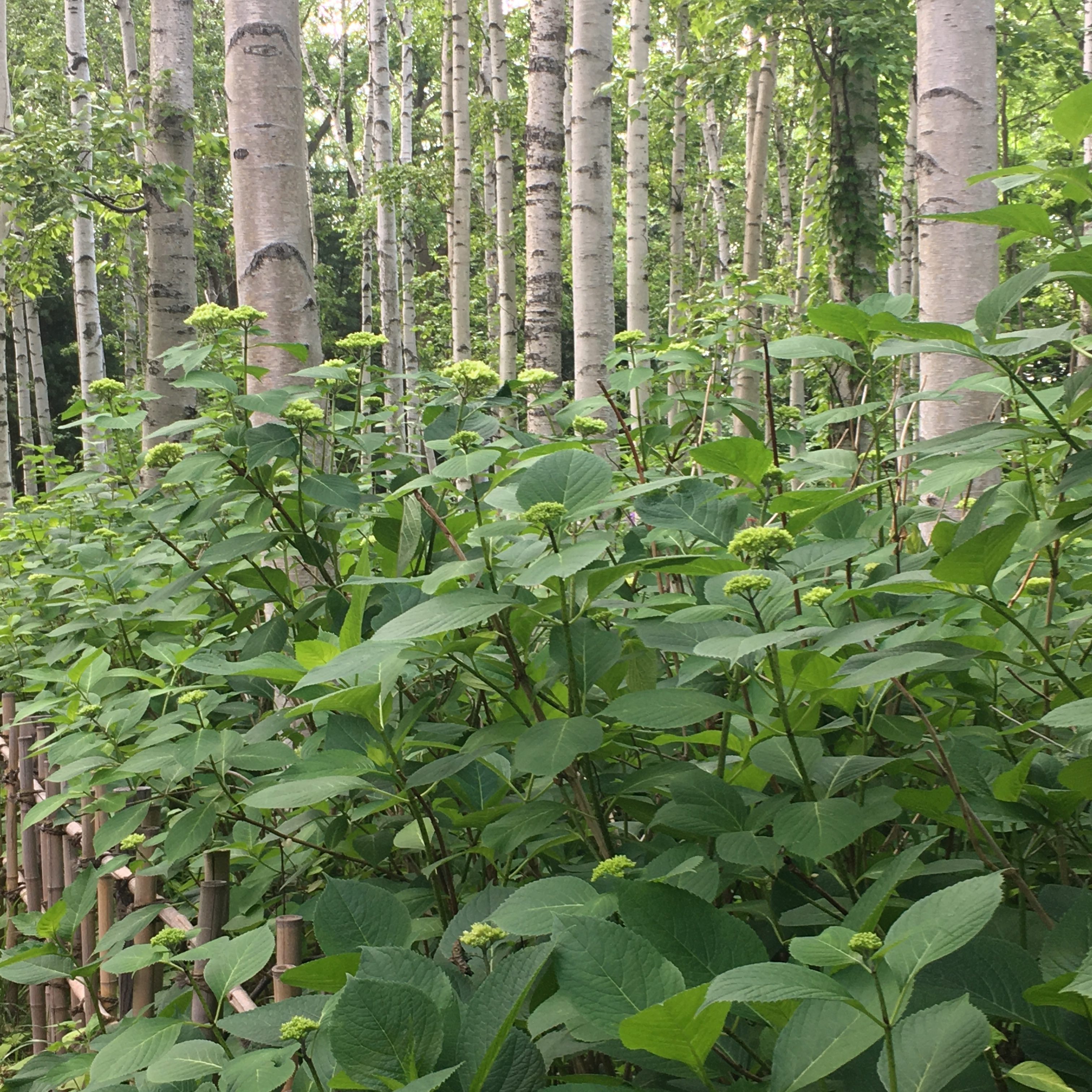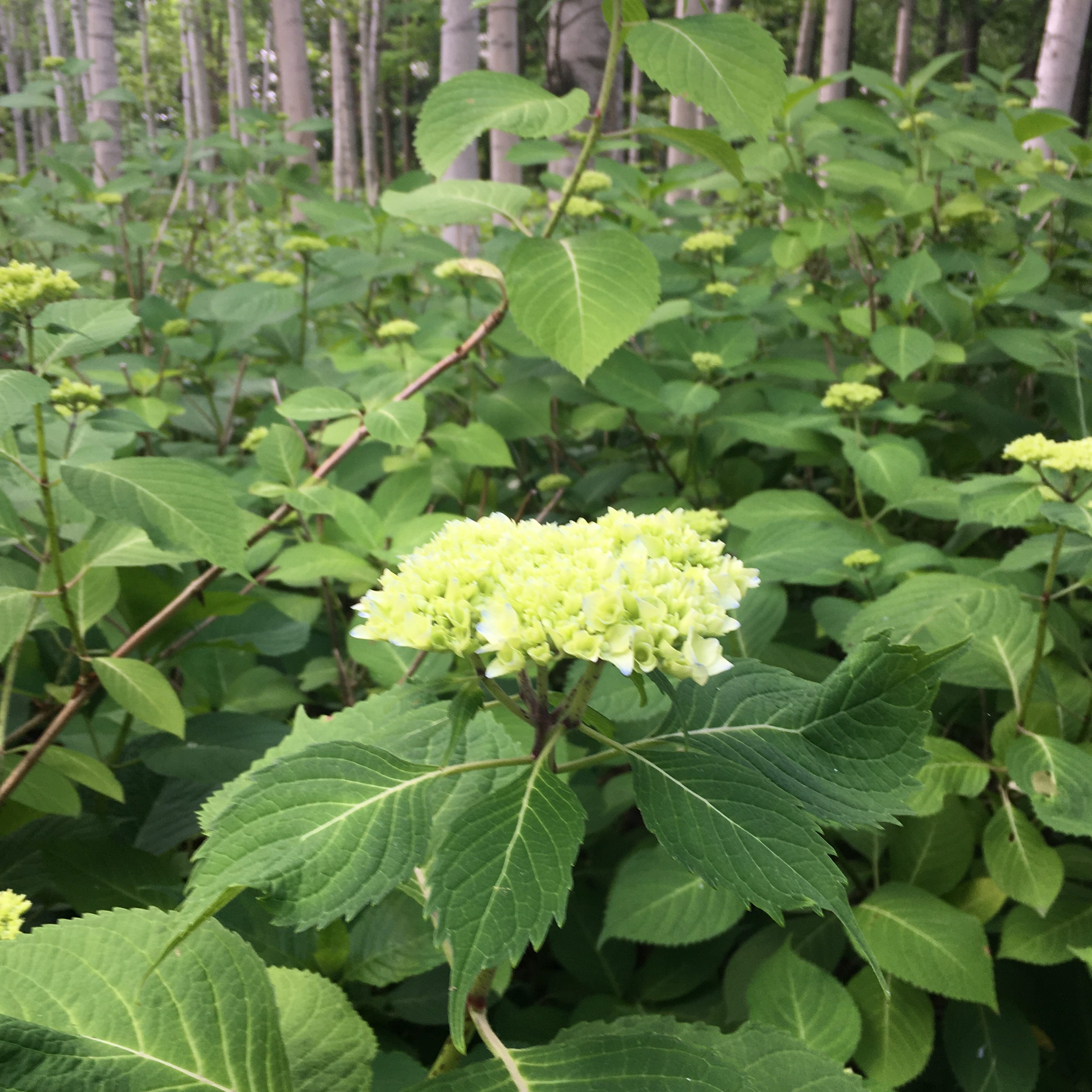 シラカバ林のアジサイのようすです。