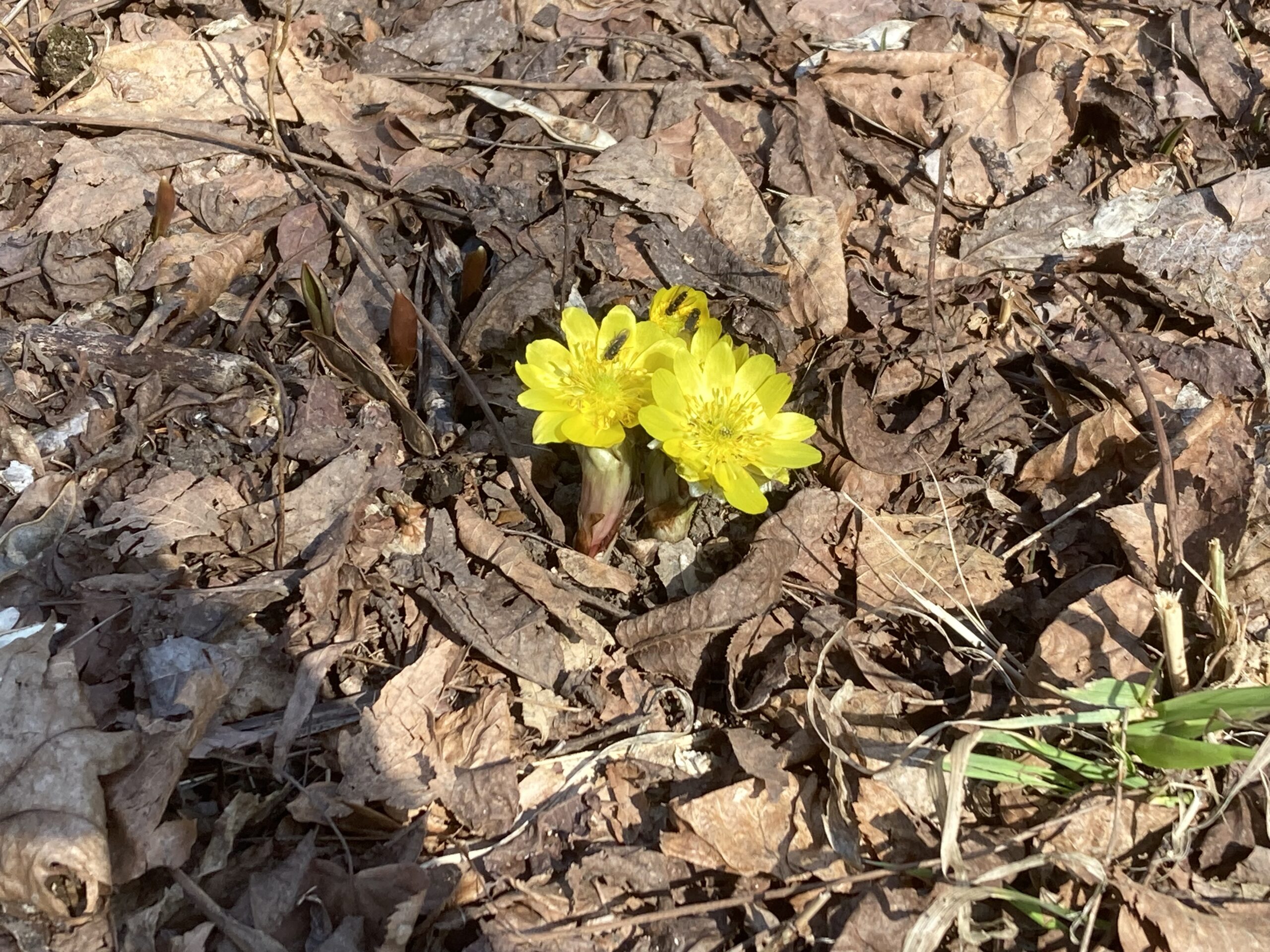 雪解けが進んで ぽつぽつとフクジュソウが咲いてきました。