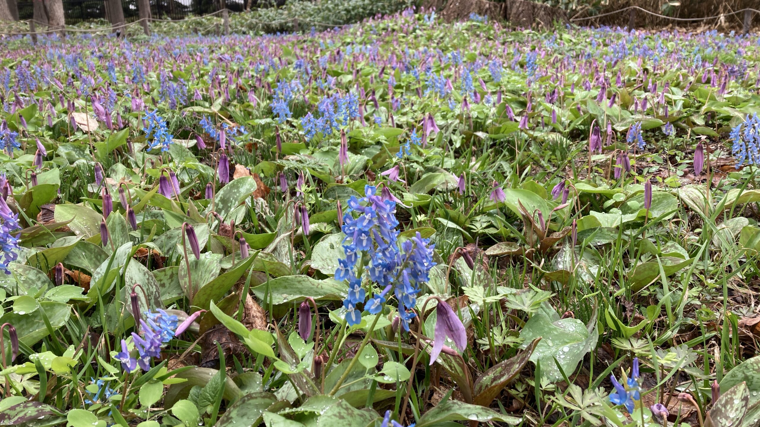 カタクリとエゾエンゴサクがしっとりと
