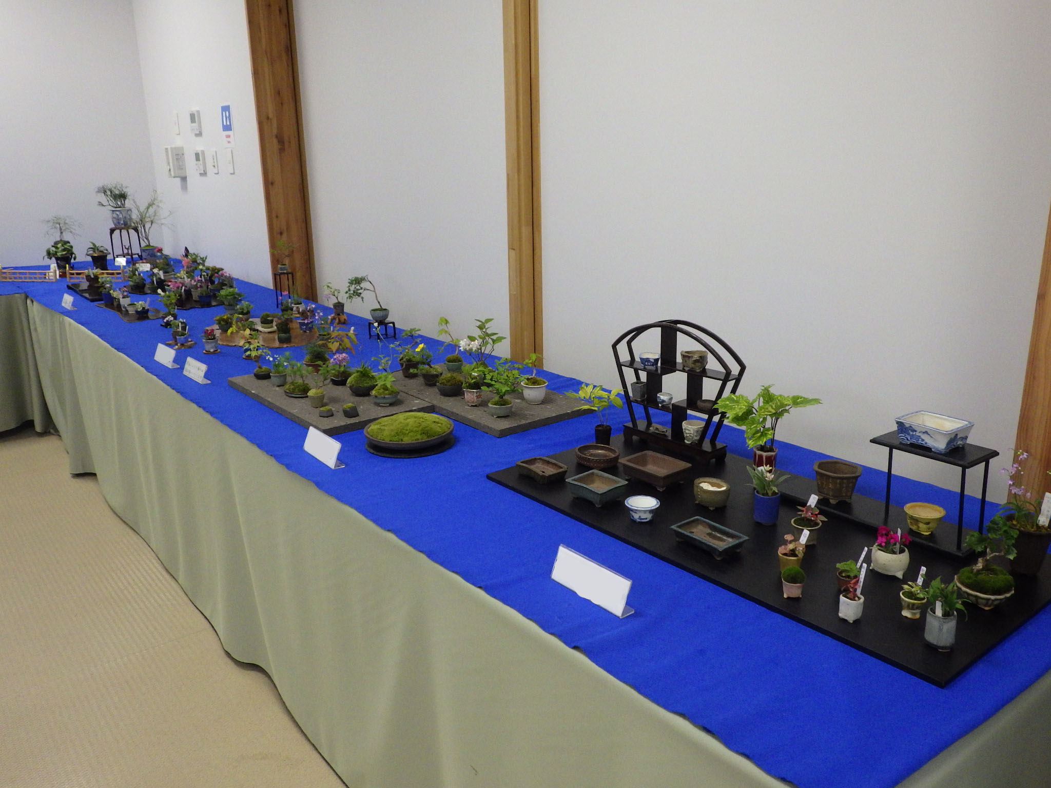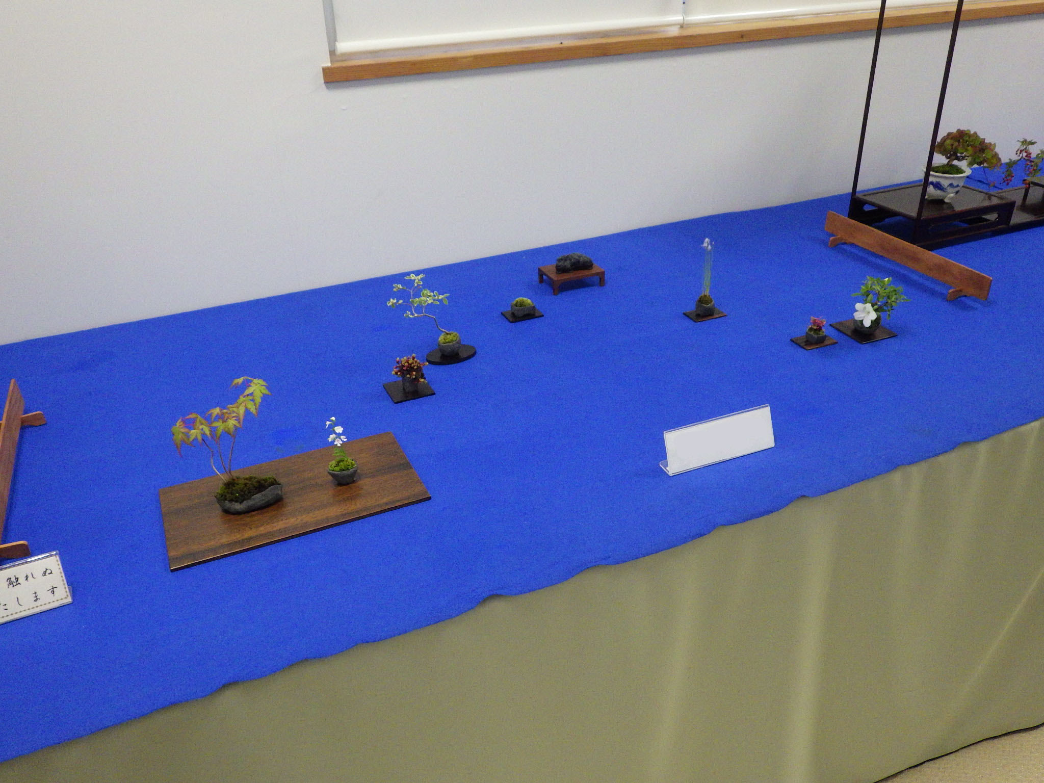 一般的な席飾りのほか、たくさんの小さな盆栽を大きめの地板に並べる平飾りの席もあり、全部で18席あります。