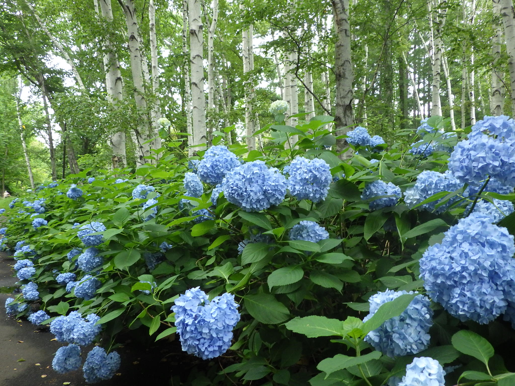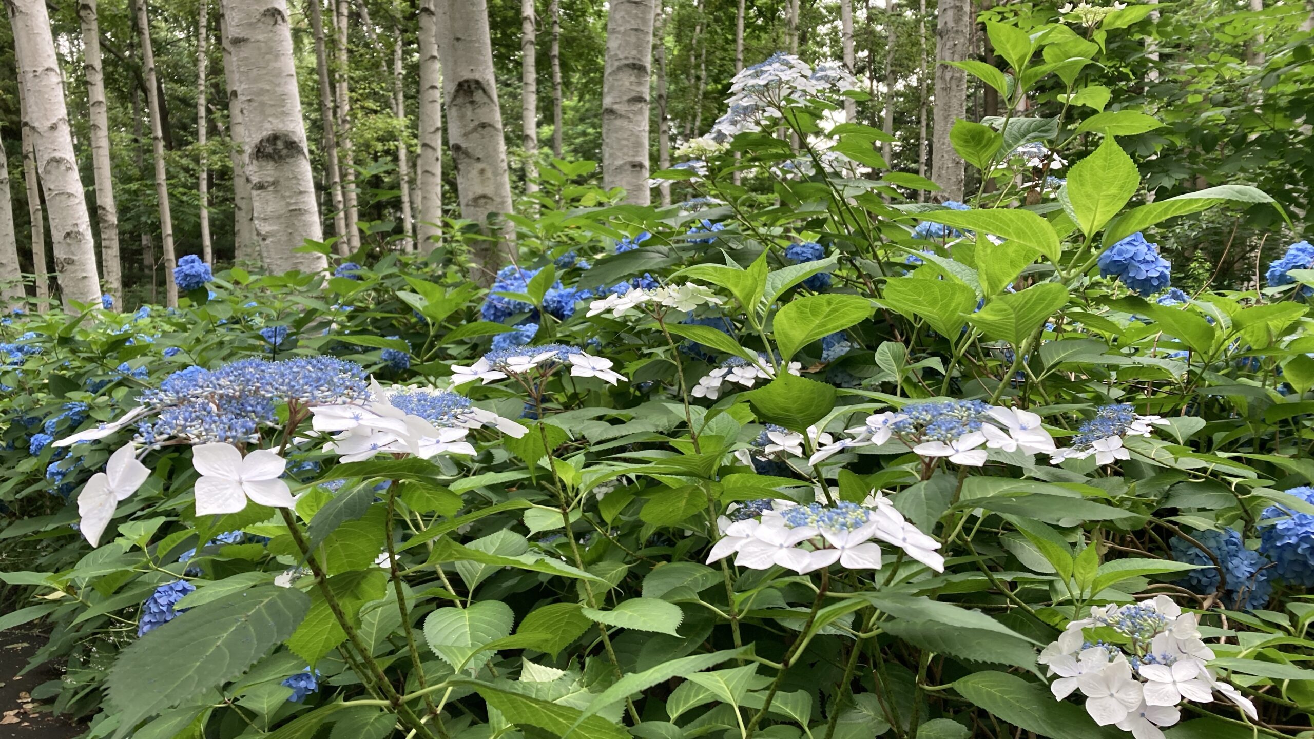 白樺とアジサイのコントラストが