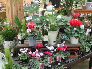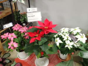 ポインセチア、シクラメン、ゴールドクレストもあります。