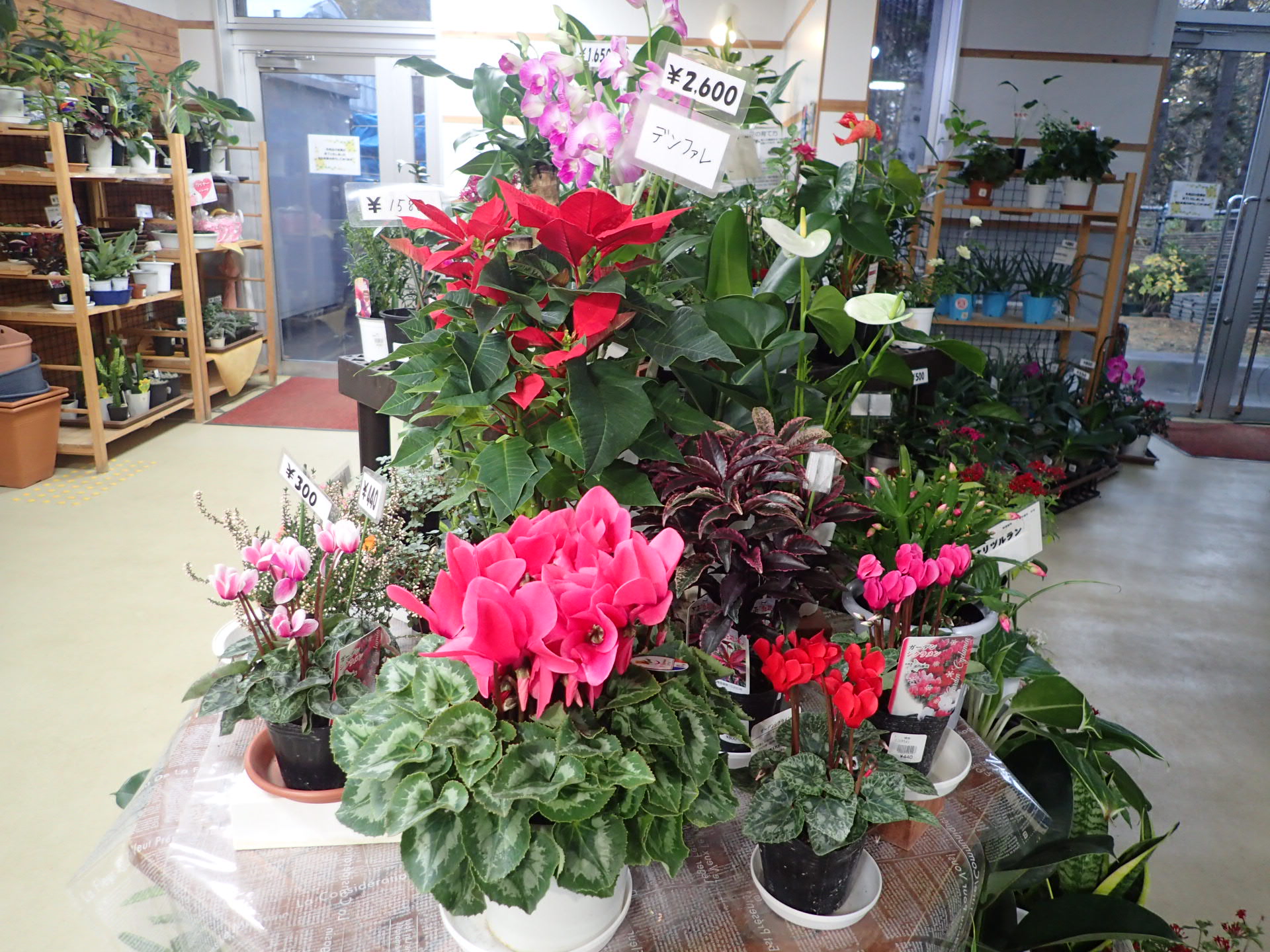 ポインセチア、シクラメン、ゴールドクレストもあります。