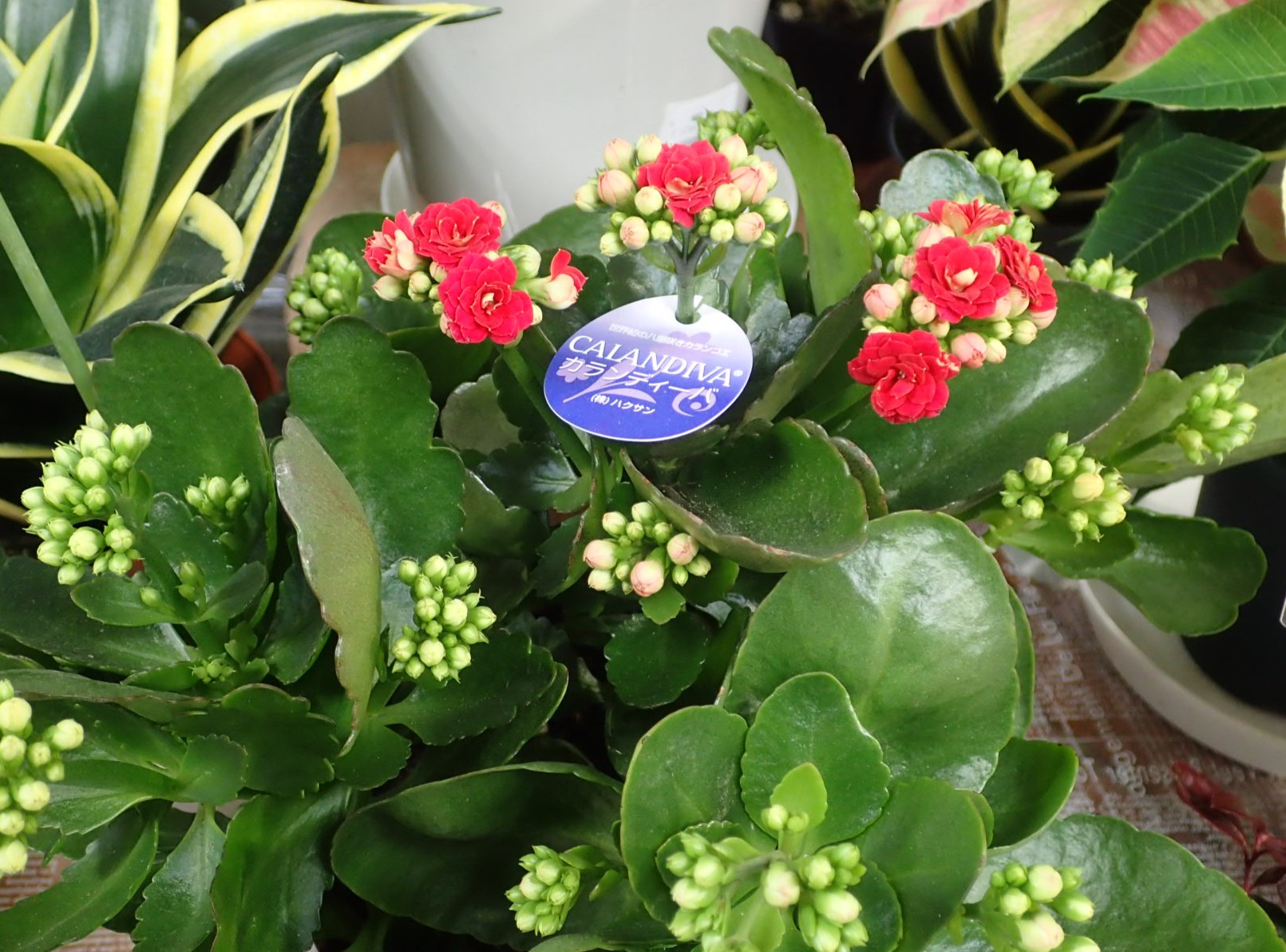 いろいろなカランコエが入荷しておりますが、バラのような八重咲のカランコエもございます。その他、カラフルなガーベラの鉢植えが入ってきました。