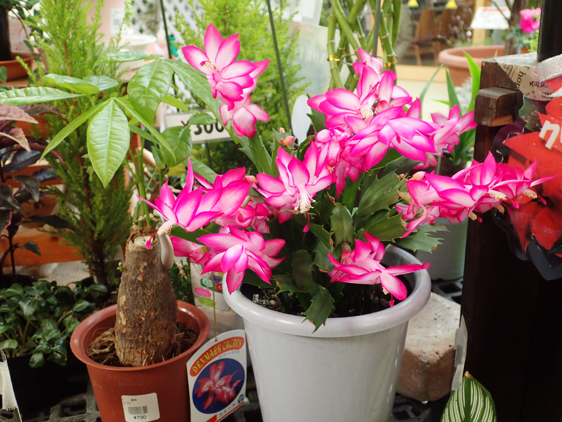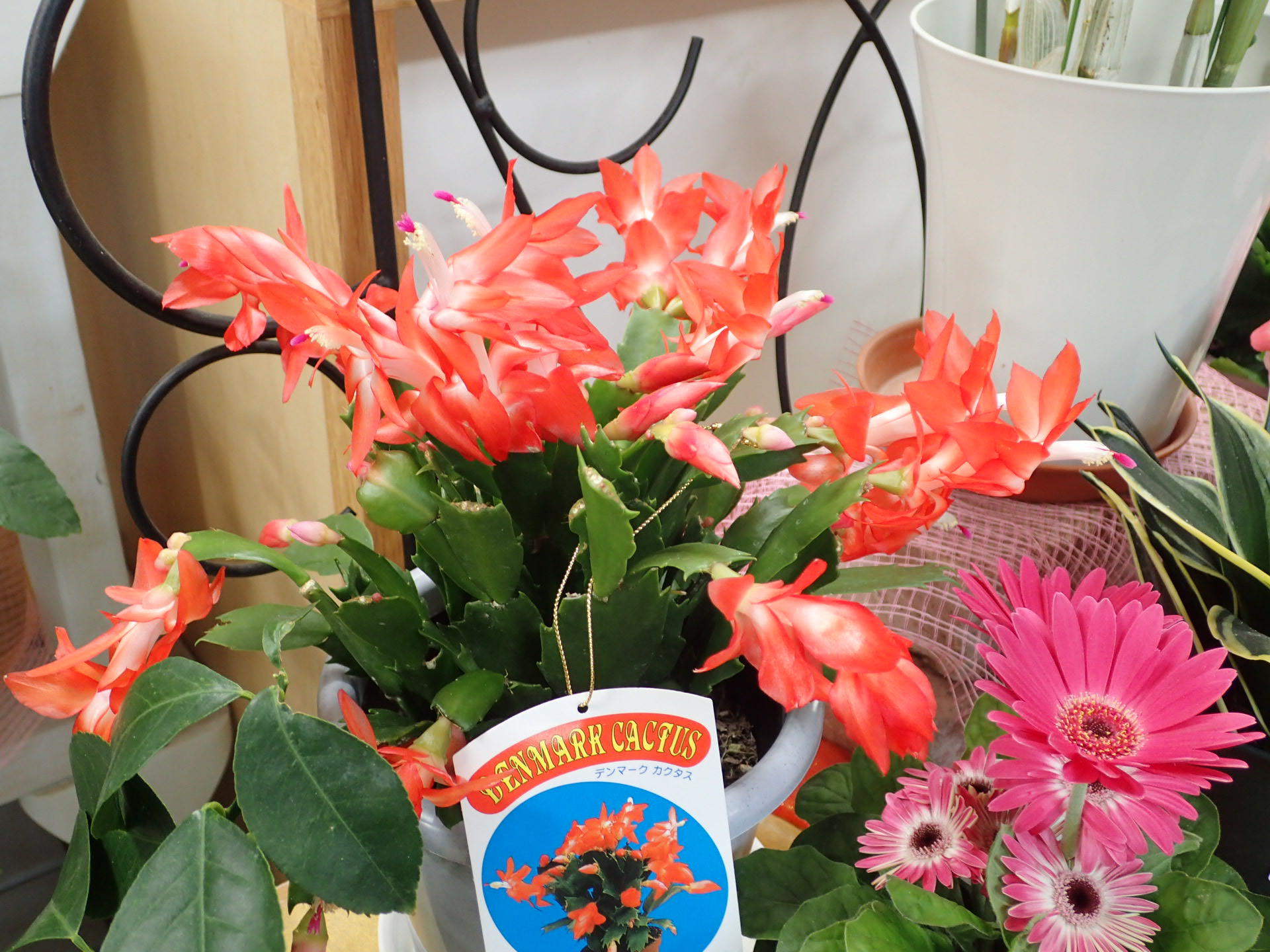 開花が進んだシャコバサボテン(デンマークカクタス)はこれからしばらく咲き続けてくれる鉢です。