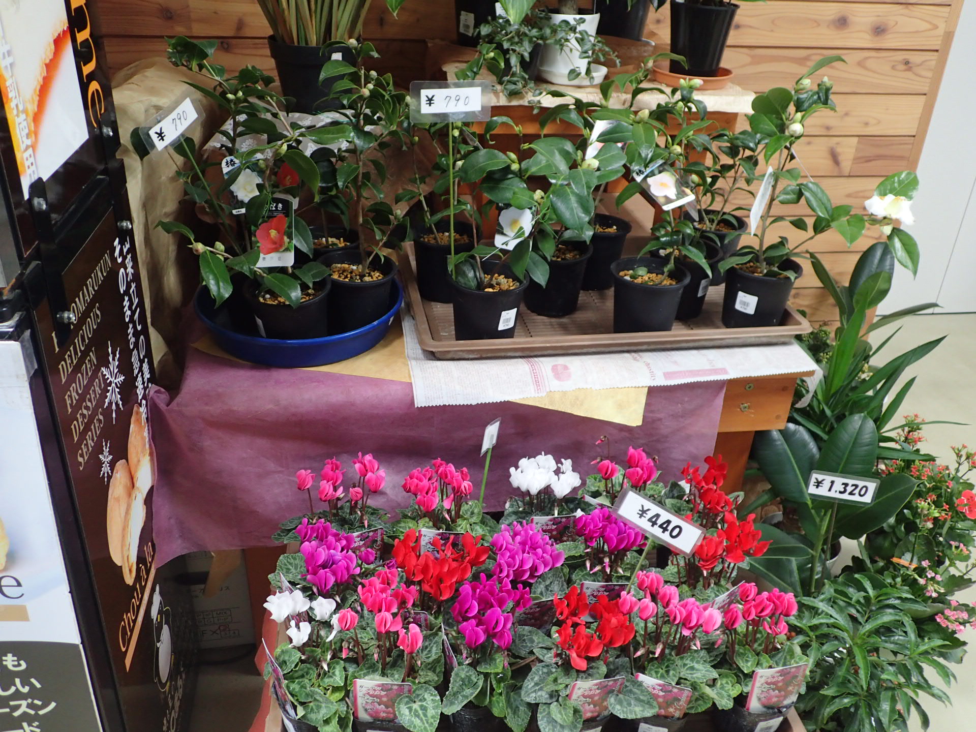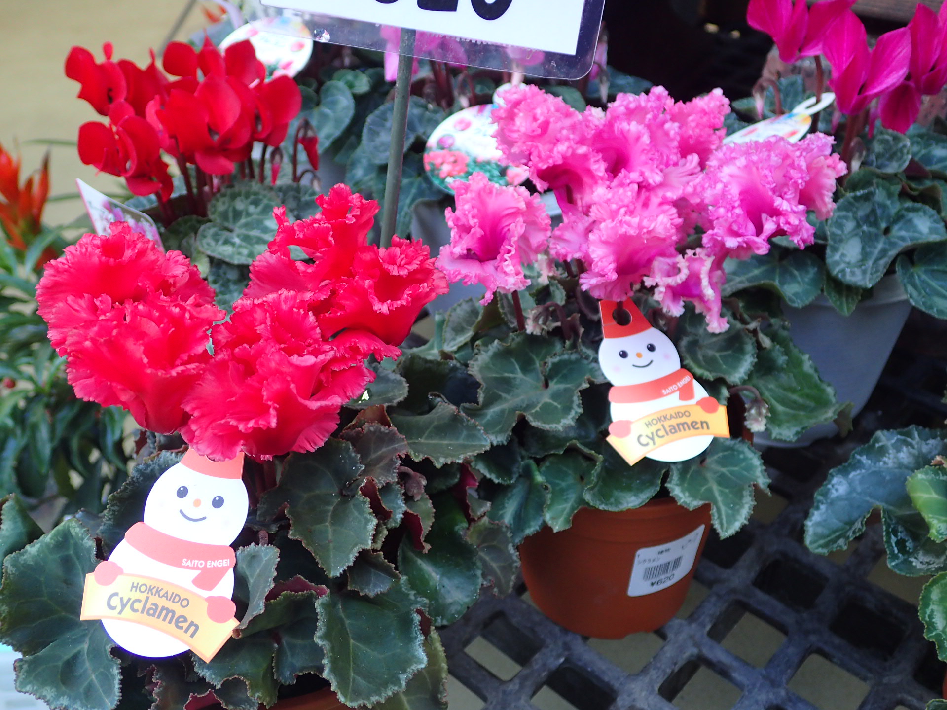 フリフリ花弁がかわいいシクラメンやツバキの苗、ミニシクラメンも続々入荷しております。