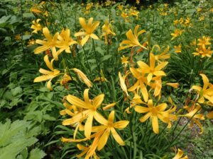 上の写真はニッコウキスゲ。野草園で咲いています。