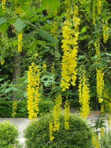 また、園内ではキングサリ、ハクウンボク、ナンジャモンジャノキ、ヤマボウシ、ベニウツギ、コデマリ、セイヨウシャクナゲなどが咲いています。
