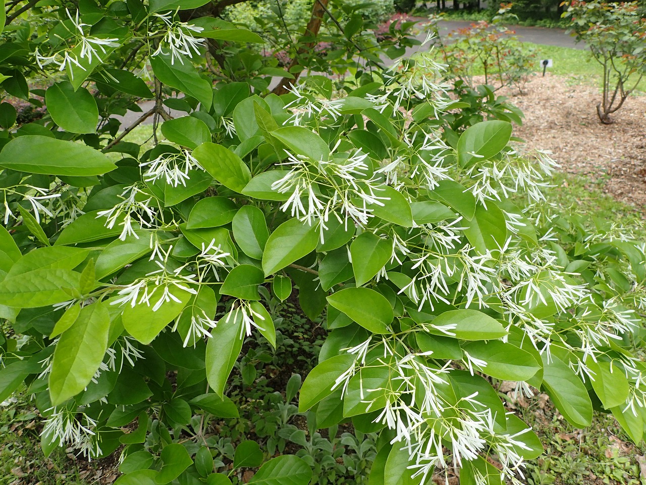 上の写真はナンジャモンジャノキ(ヒトツバタゴ)。ちょうど見ごろです。