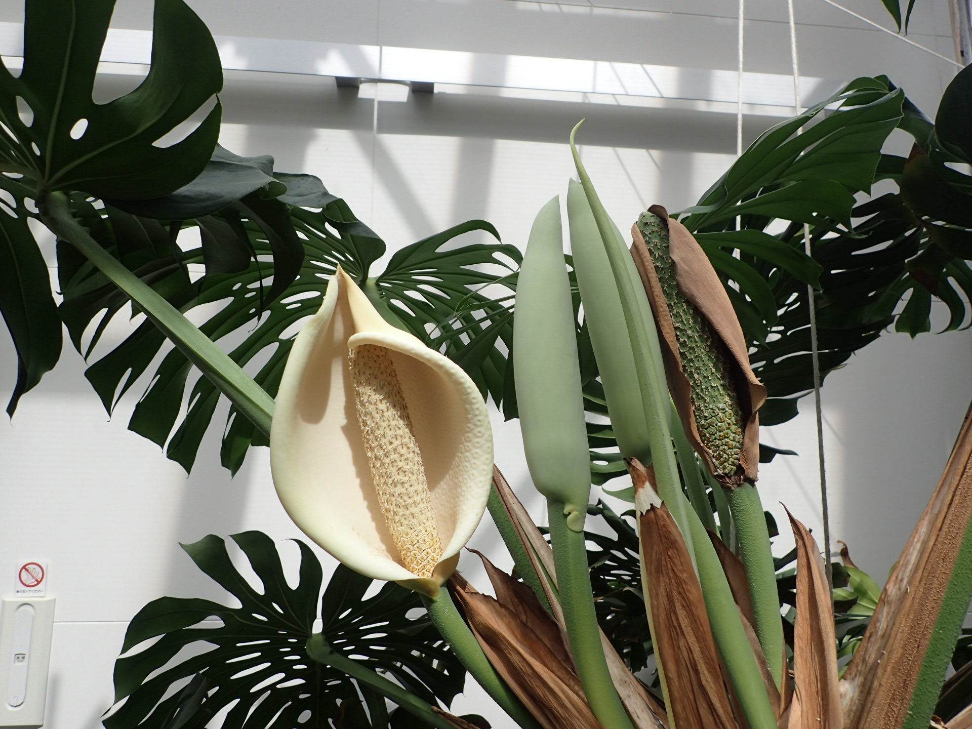 8月13日にご紹介したモンステラの蕾が開花しました。