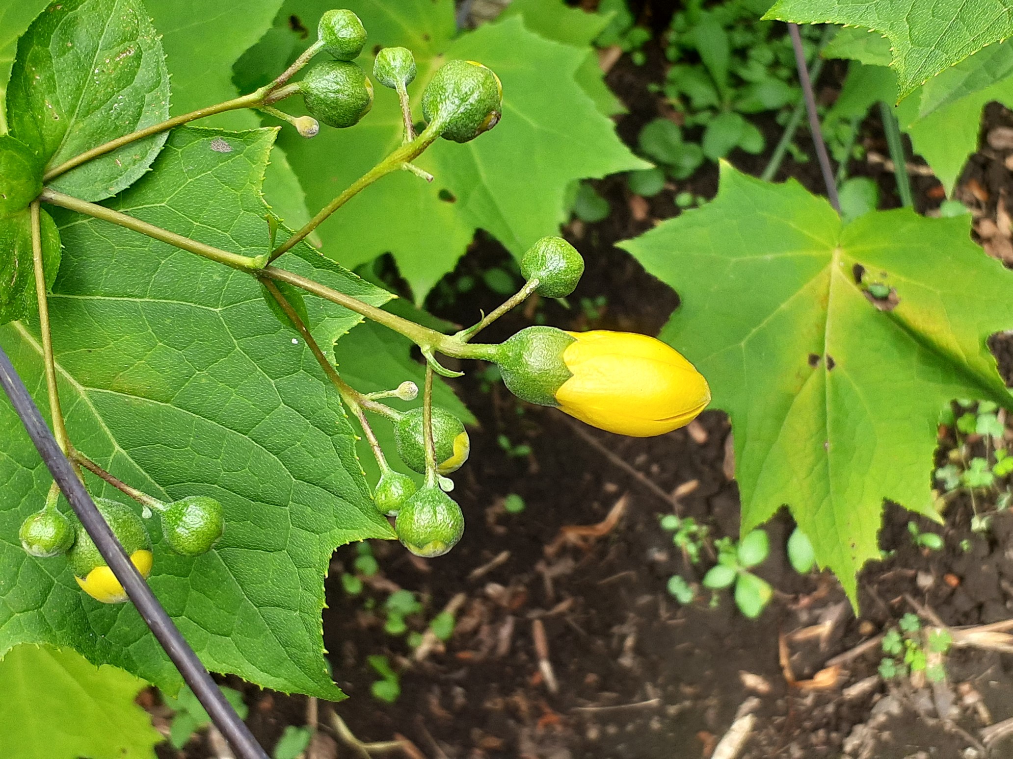 いくつか楕円形に大きくなったキレンゲショウマの蕾が見て取れます。