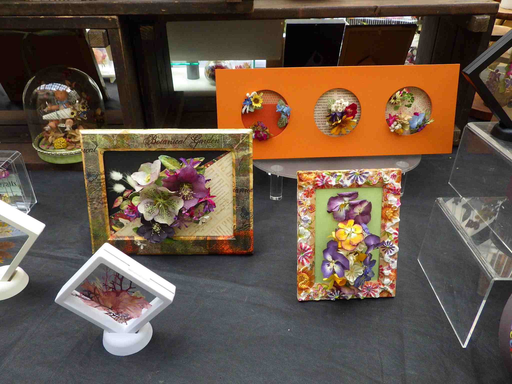 今年で12回目の開催となり、押し花、レカンフラワー額飾りの他、立体的なイメージのポップアップフラワーも今回から展示しております。