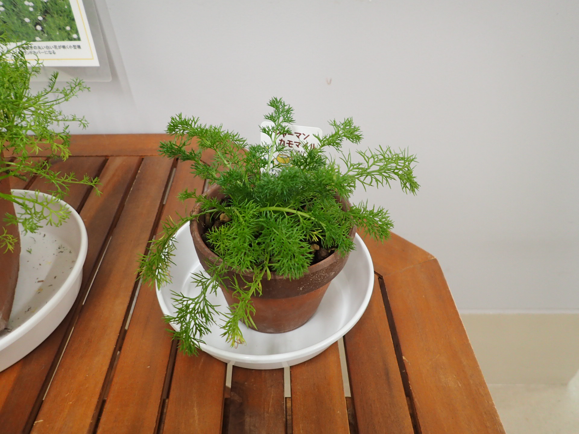 また、ハーブティーとして入手できるジャーマンカモミールのドライも展示しておりますので、