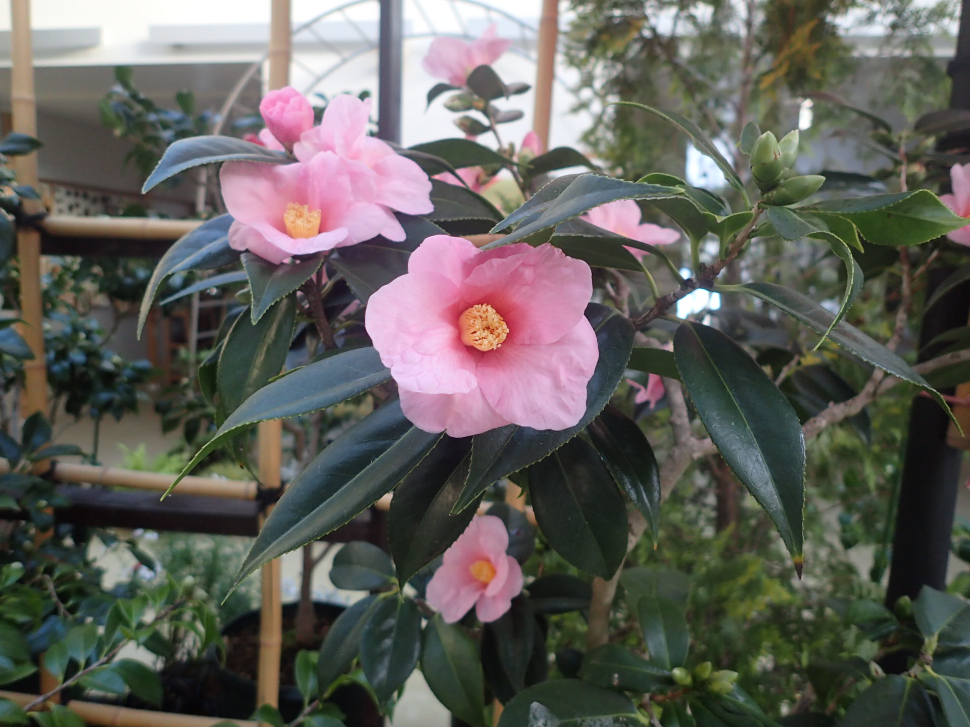 これから次々と開花する美しいツバキをお楽しみください。