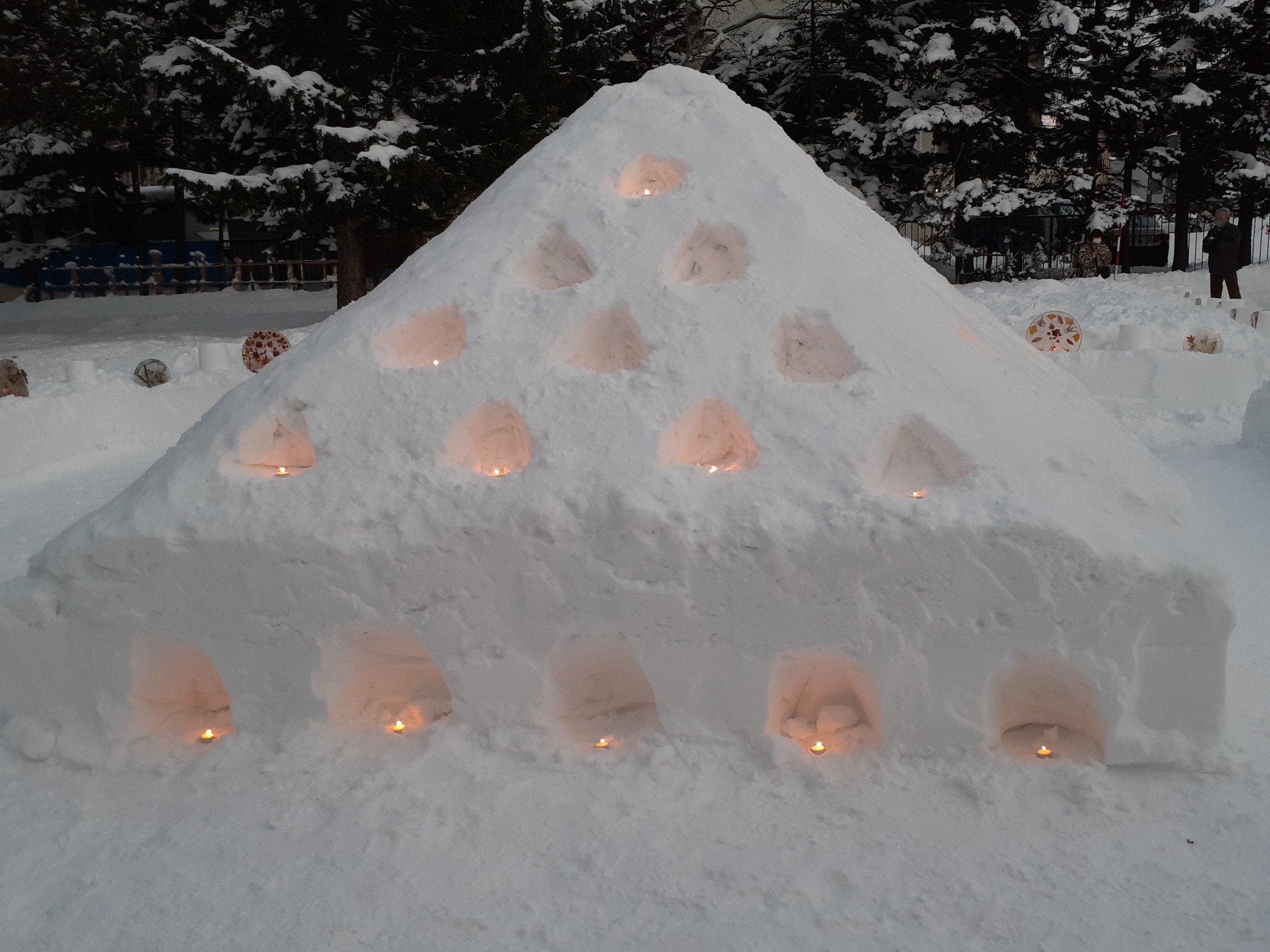 今年は雪が少なく、こんなに大きなオブジェも作れるのかまだちょっと心配です。