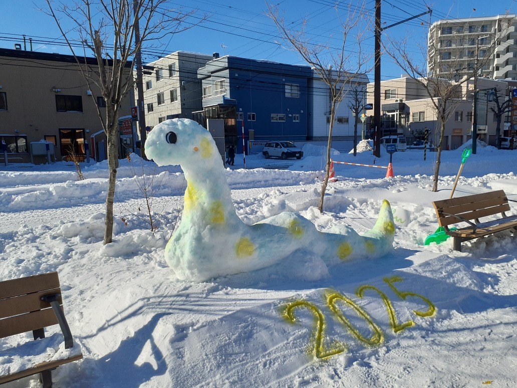 昨日の雪が少しまとまっていたので雪像も作れるようになりました。