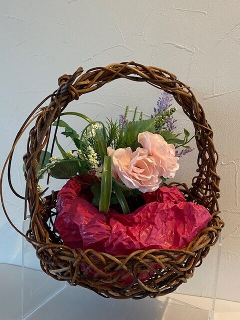 あけびで作る花籠です。自分でお好きな花を飾りつけしてお楽しみください。