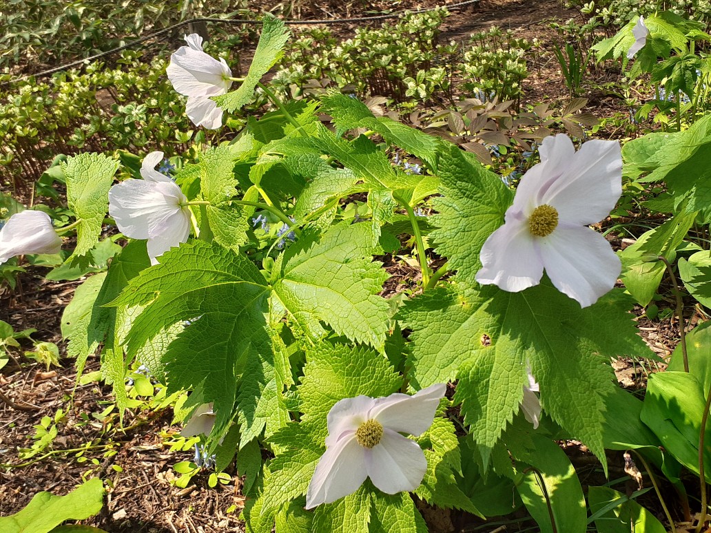 この他、野草園では下の写真のシラネアオイ、洋種カタクリ、ヒトリシズカなどが満開です。