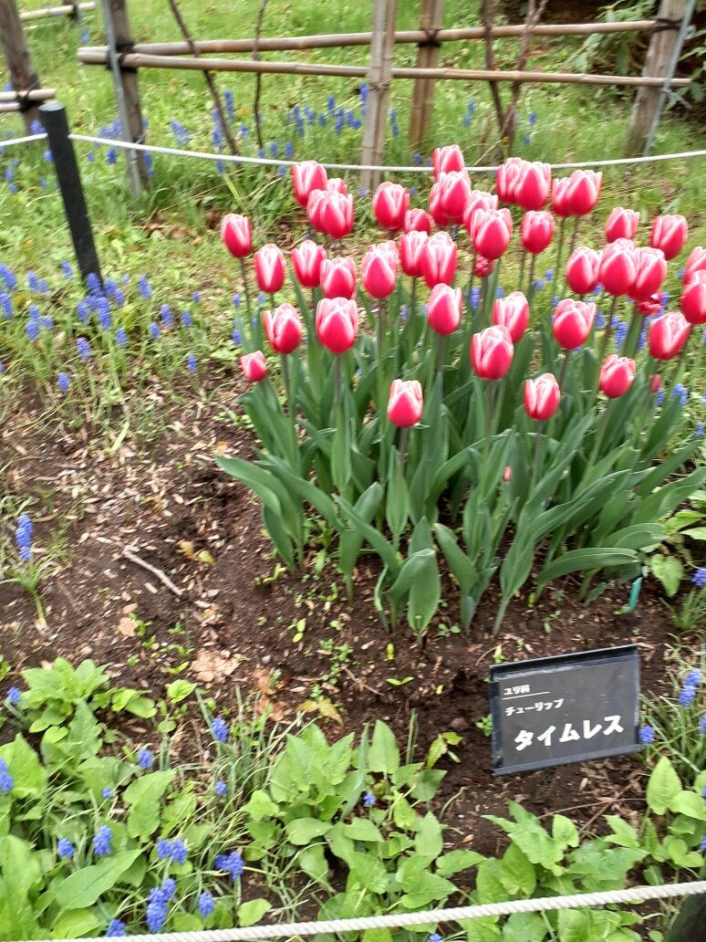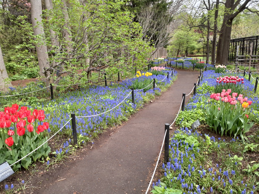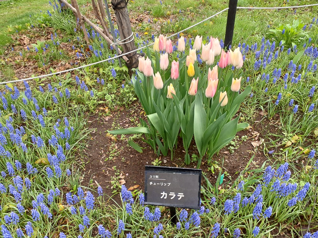 豊平公園のムスカリの小径のムスカリとチューリップが見ごろになってきました。